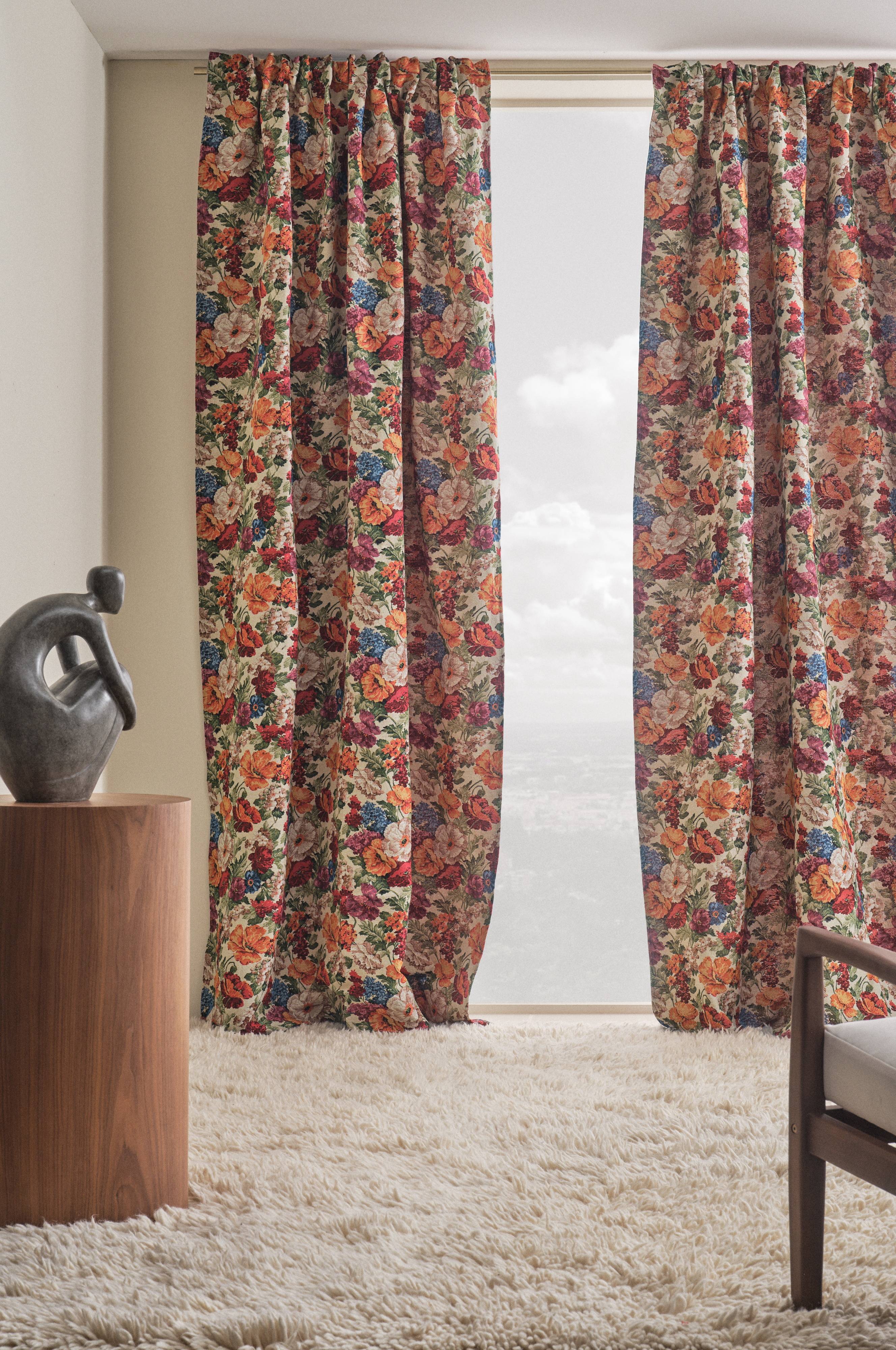 Luksus i stuen møter en tidløs stil med denne blomstrede jacquardgardinen i polyester og bomull. Det elegante mønsteret kompletterer disse to lengdene med klassisk sjarm. Forvandle rommet ditt med et snev av tradisjon.