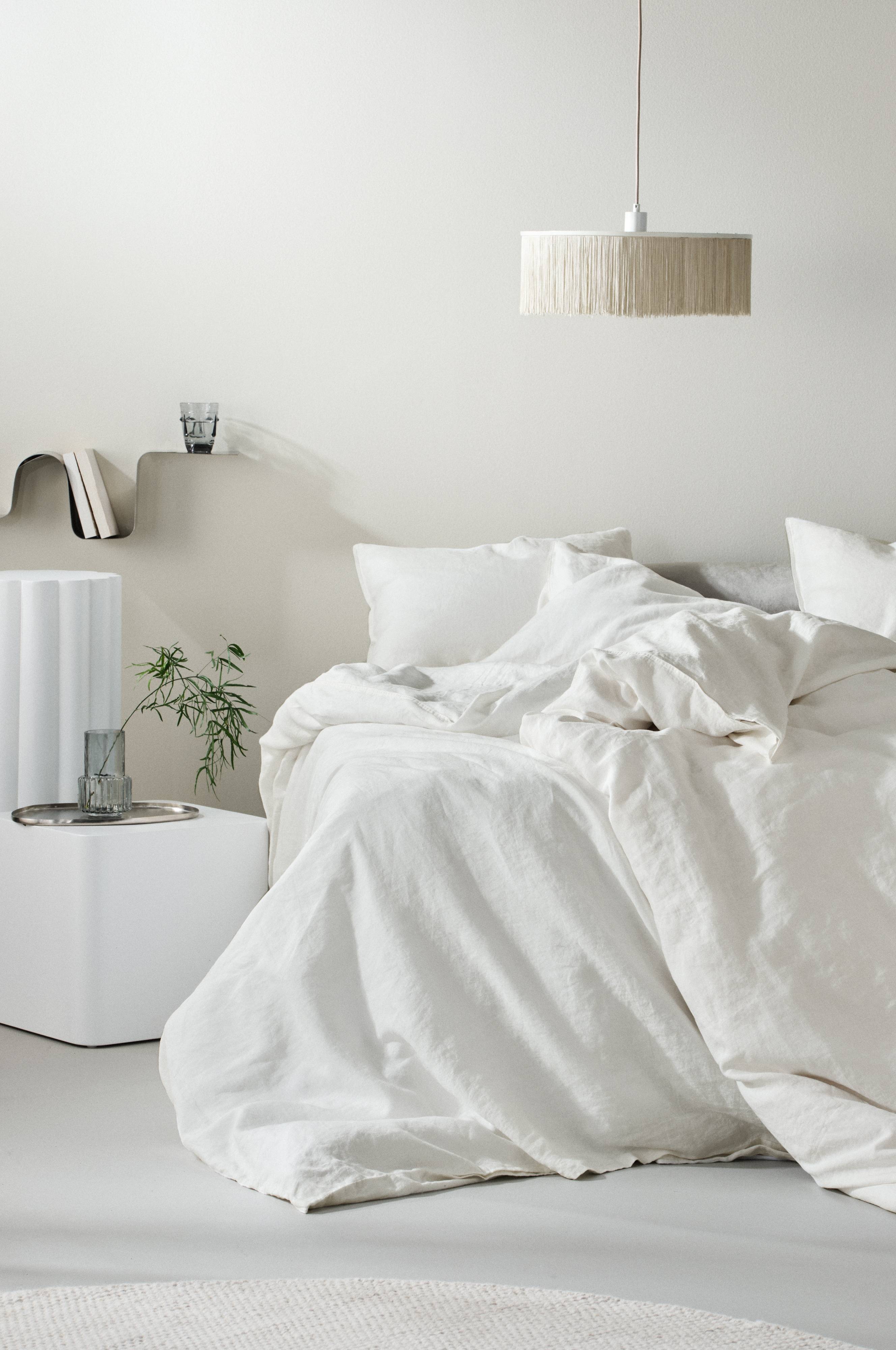 Sengesett i to deler med et dynetrekk og et putevar av ekte lin, sertifisert med European Flax. Sengetøyet er i en smidig, litt tynn kvalitet som er komfortabel. Linet i JONIE er vasket for å få en mykere og mer smidig følelse. Lin varmer når det er kaldt, og er svalt å sove i når det er varmt. Når linet er vasket får det en enda mykere tekstur som er komfortabel mot huden. Åpning øverst i hjørnene på dynetrekket. Det gjør det lettere å tre dynetrekket over dynen. Knapper for lukking av dynetrekket. Den friske fargeskalaen er inspirert av naturen. Stoffets vekt 160 g/m². Trådtetthet på 104 tc. (Trådtettheten forteller om antallet tråder, thread counts, pr. kvadrattomme i et stoff. Jo høyere trådtetthet, desto høyere kvalitet. Unntaket er lin som ofte veves løsere for å få den riktige følelsen.)