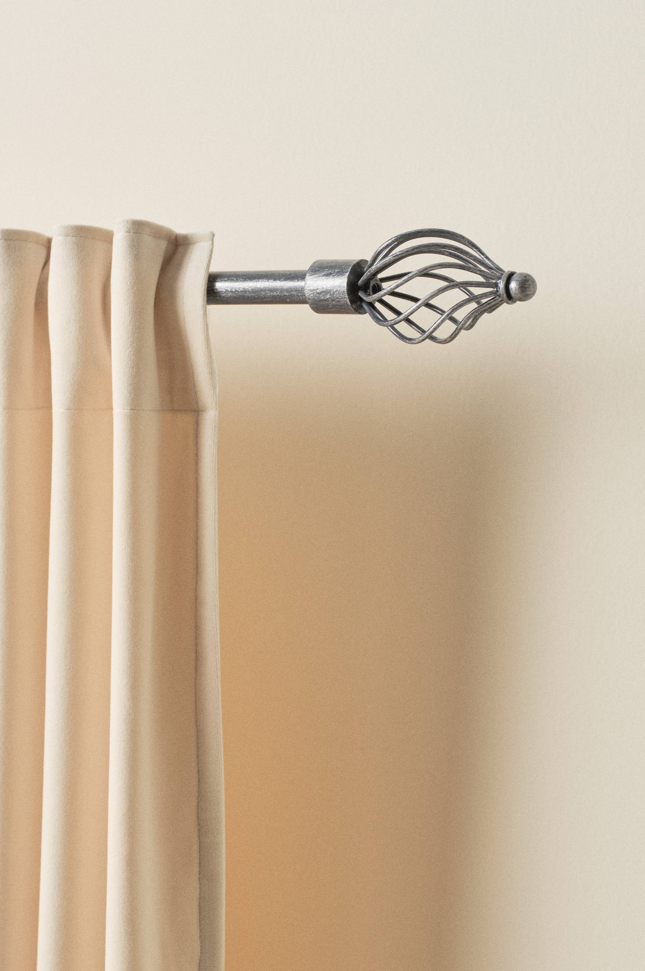 Stang i metall med endedekor. Regulerbar 67-180 cm. Ø 16/19 mm. Veggfester og skruer inngår. Veggavstand ca 10 cm. Dekor i metall, 12 cm.