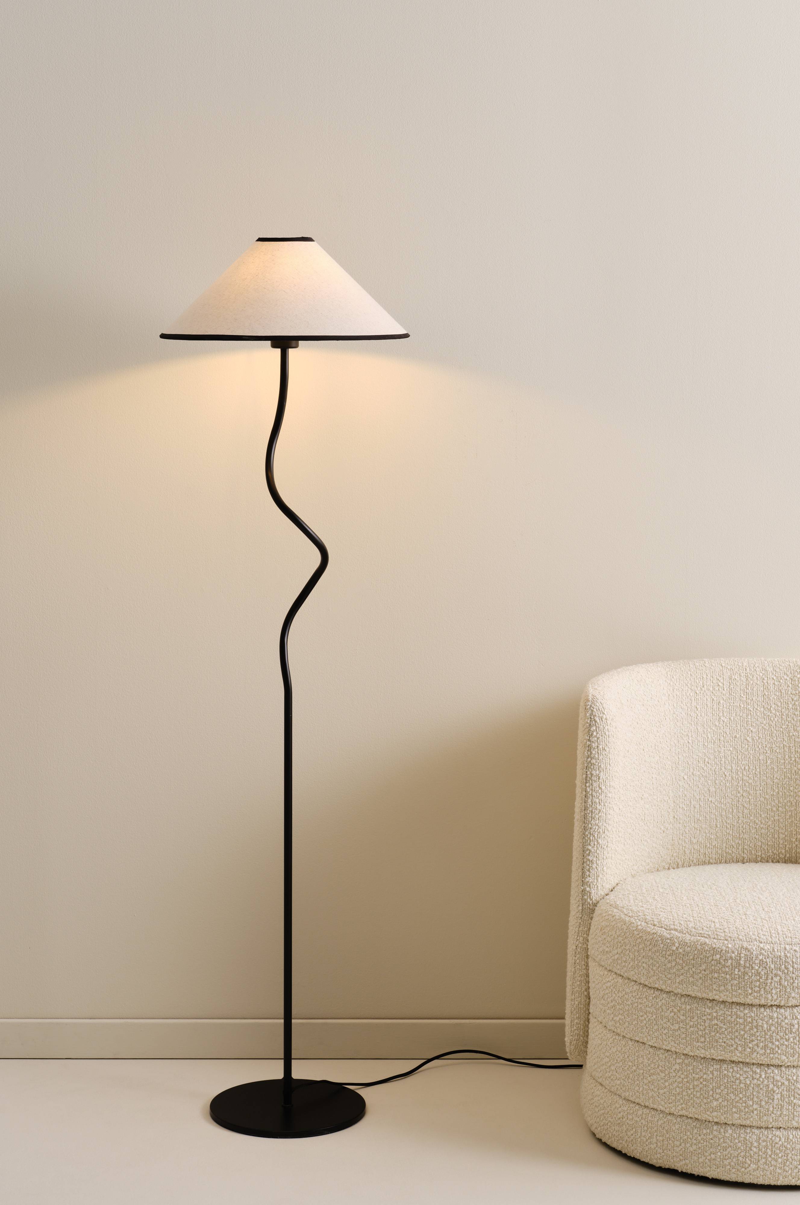 Gulvlampen med en naturfarget linskjerm kompletterer møblene dine på en hjemmekoselig måte. Lampefoten i jern har et fint utseende. JULIET er en tidløs og fleksibel gulvlampe som skaper koselige hjørner i hjemmet. Praktisk fotbryter som kan dimmes. Ujordet veggplugg.