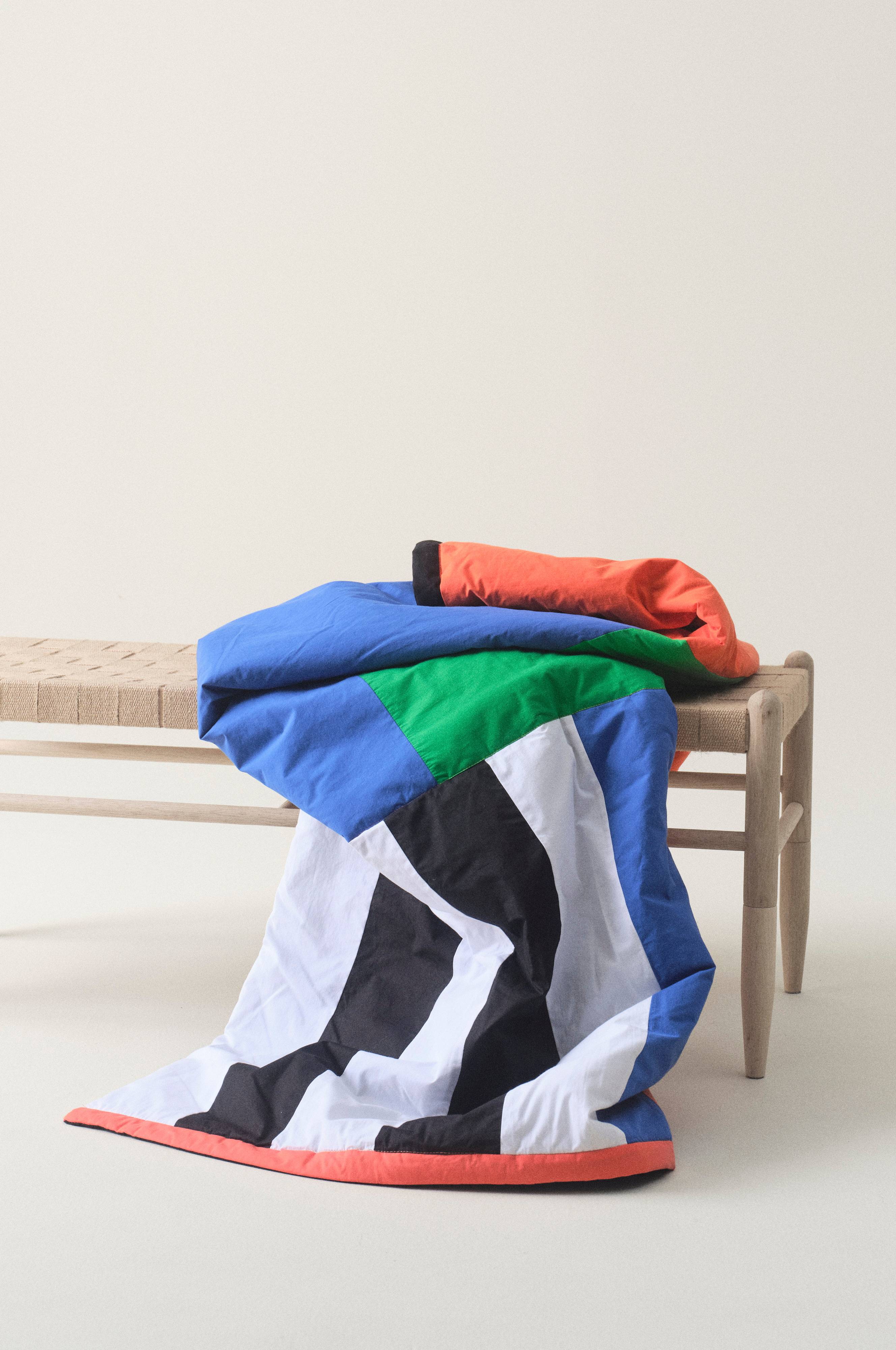 Fargerikt pledd i lappeteppeteknikk av myk og herlig bomull med lett fyll av polyester. Baksiden er ensfarget. Koselige pledd kan man aldri få for mange av, og KIMMIE passer like fint i sofakroken en vinterkveld som i hammocken en sval sommerkveld.