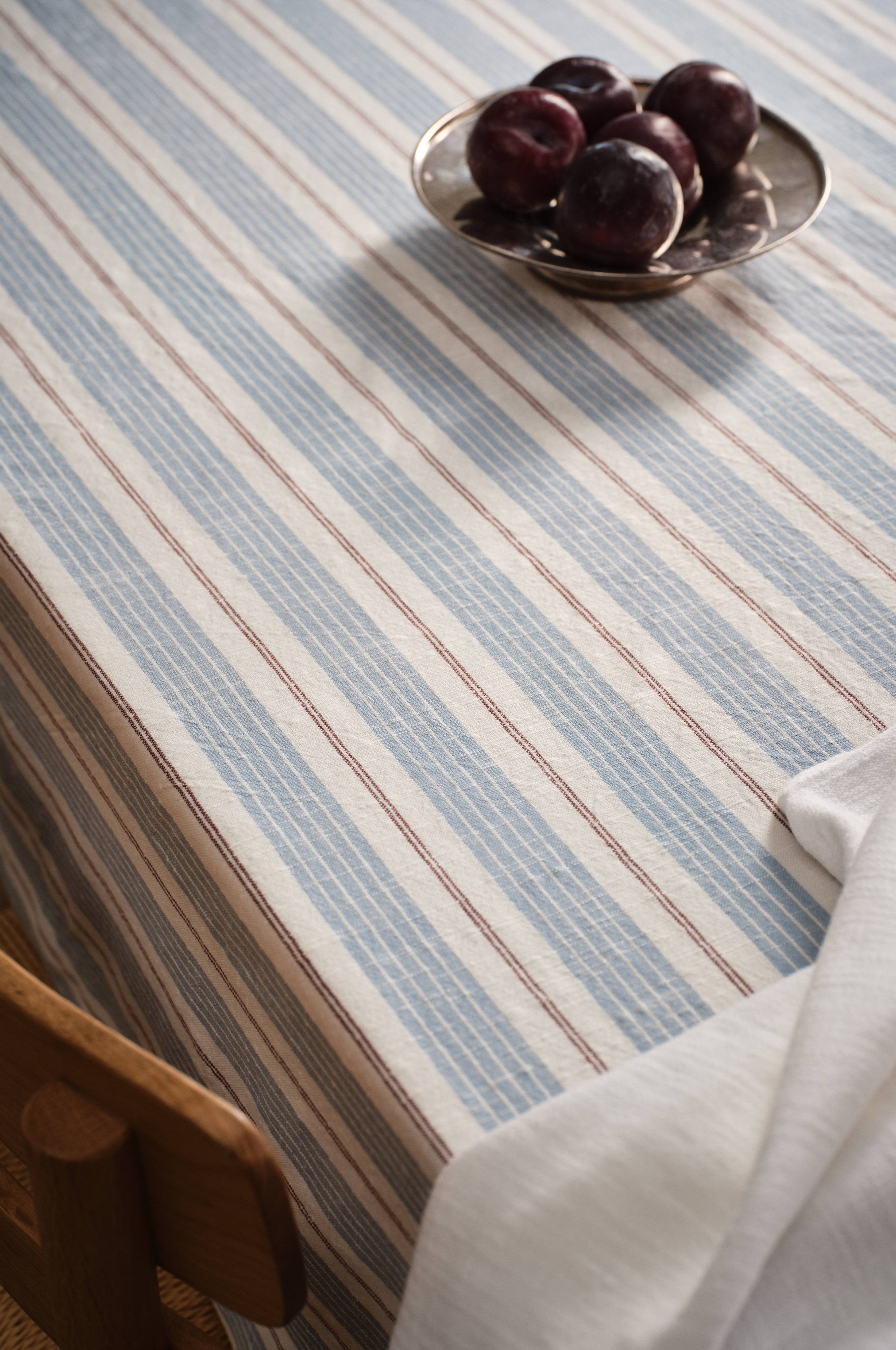 KJELL-duken har et klassisk garnfarget skjortestripemønster som gir et tidløst preg til ethvert spisemiljø. Duken er laget av bomull med en unik slub-struktur, og den enzymvaskede finishen forsterker det innbydende uttrykket. Duken er ideell for å skape en innbydende atmosfære og passer perfekt til både uformelle og formelle sammenkomster.