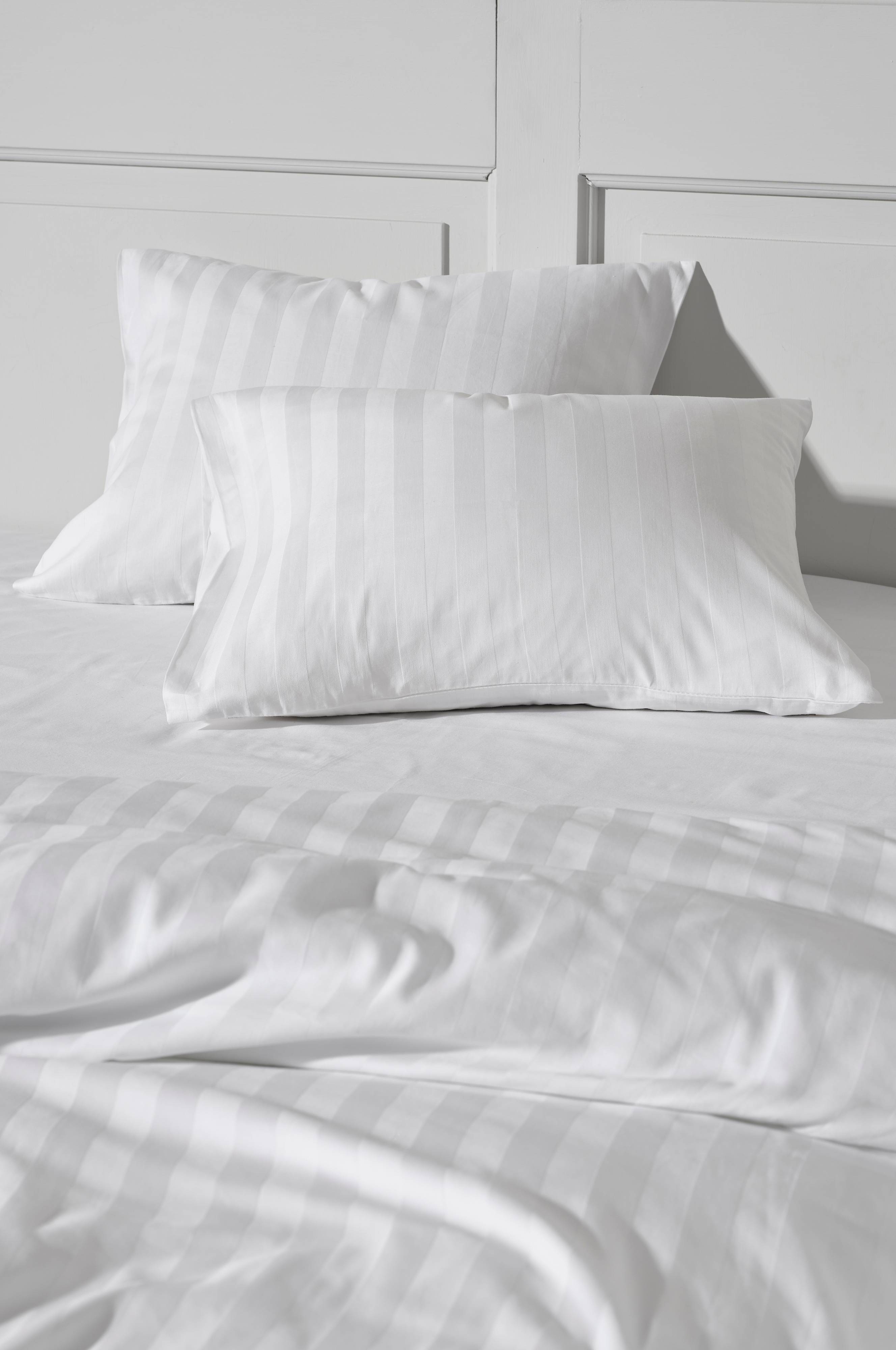 2-pk ensfargede putevar i sateng av bomull med vevde striper ton-i-ton. Sateng er en veveteknikk som gir et herlig glatt og mykt stoff. Bomull som veves med denne teknikken blir til et stoff med fin glans og luksuriøs følelse. Sengetøy i sateng passer deg som ønsker en luksuriøs soveopplevelse, akkurat som på hotell, bare hjemme! Trådtetthet på 215 tc. (Trådtettheten forteller om antallet tråder, thread counts, pr. kvadrattomme i et stoff. Jo høyere trådtetthet, desto høyere kvalitet).
