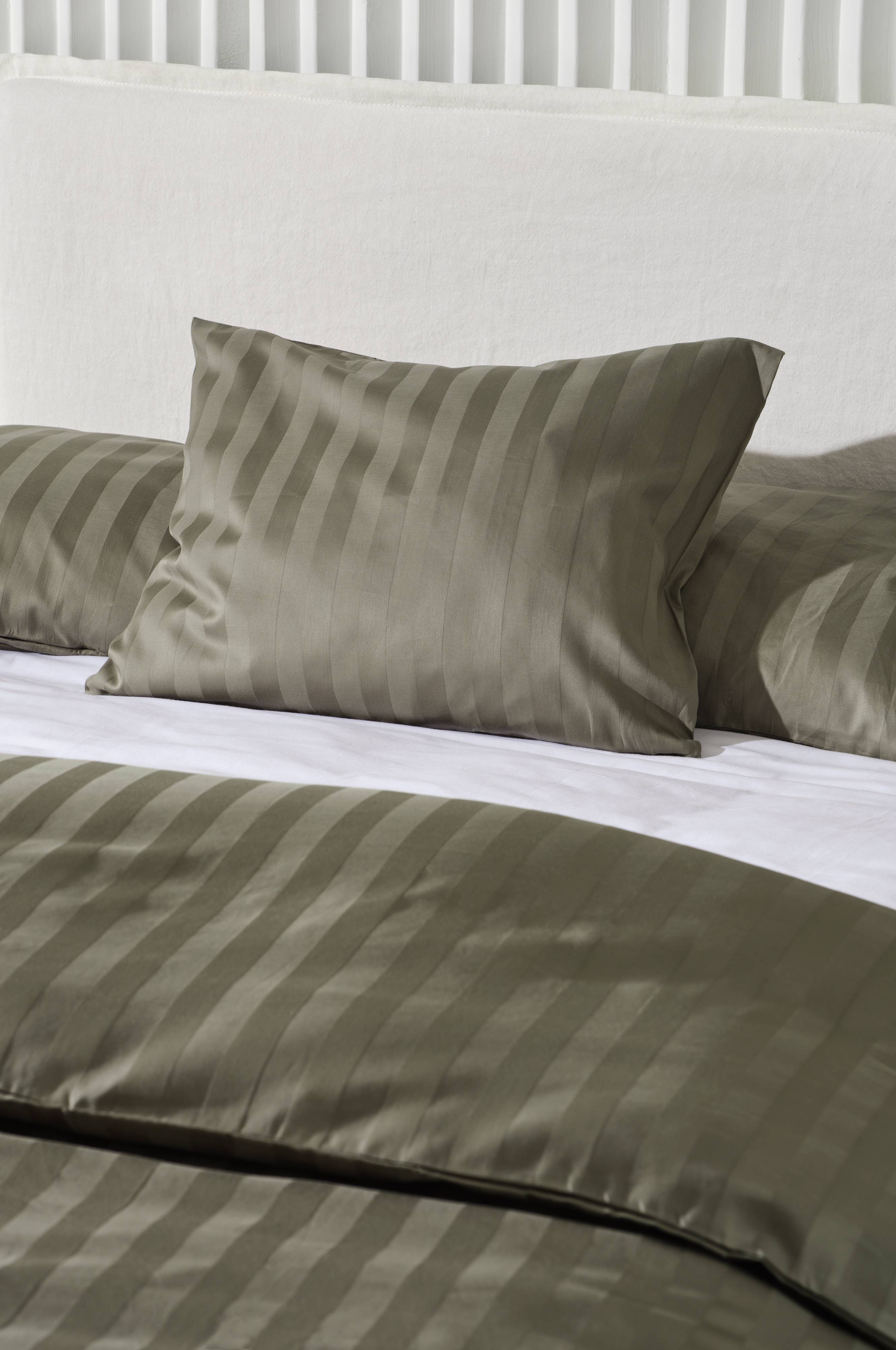 1-pk ensfarget putevar i sateng av bomull med vevde striper ton-i-ton. Sateng er en veveteknikk som gir et herlig glatt og mykt stoff. Bomull som veves med denne teknikken blir til et stoff med fin glans og luksuriøs følelse. Sengetøy i sateng passer deg som ønsker en luksuriøs soveopplevelse, akkurat som på hotell, bare hjemme! Trådtetthet på 215 tc. (Trådtettheten forteller om antallet tråder, thread counts, pr. kvadrattomme i et stoff. Jo høyere trådtetthet, desto høyere kvalitet).