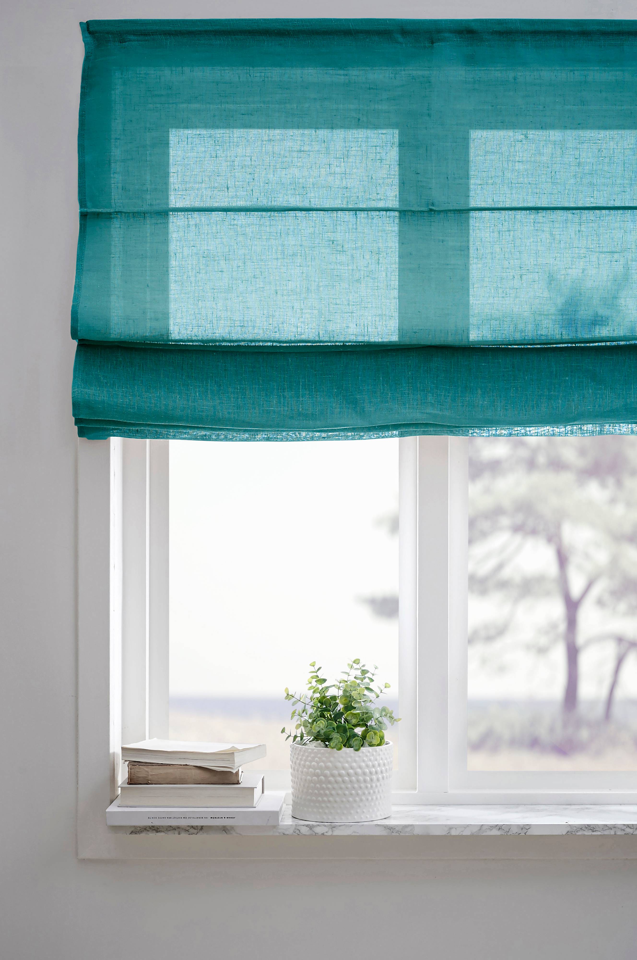 Jeg kjøpte i fargen lin beige 140, fikk den til å passe at den er tynt vevd da vi har store trær utenfor som fjerner mye lys. Ingen heisgardin som du løfter opp eller ned, men perfekt o pent ti…