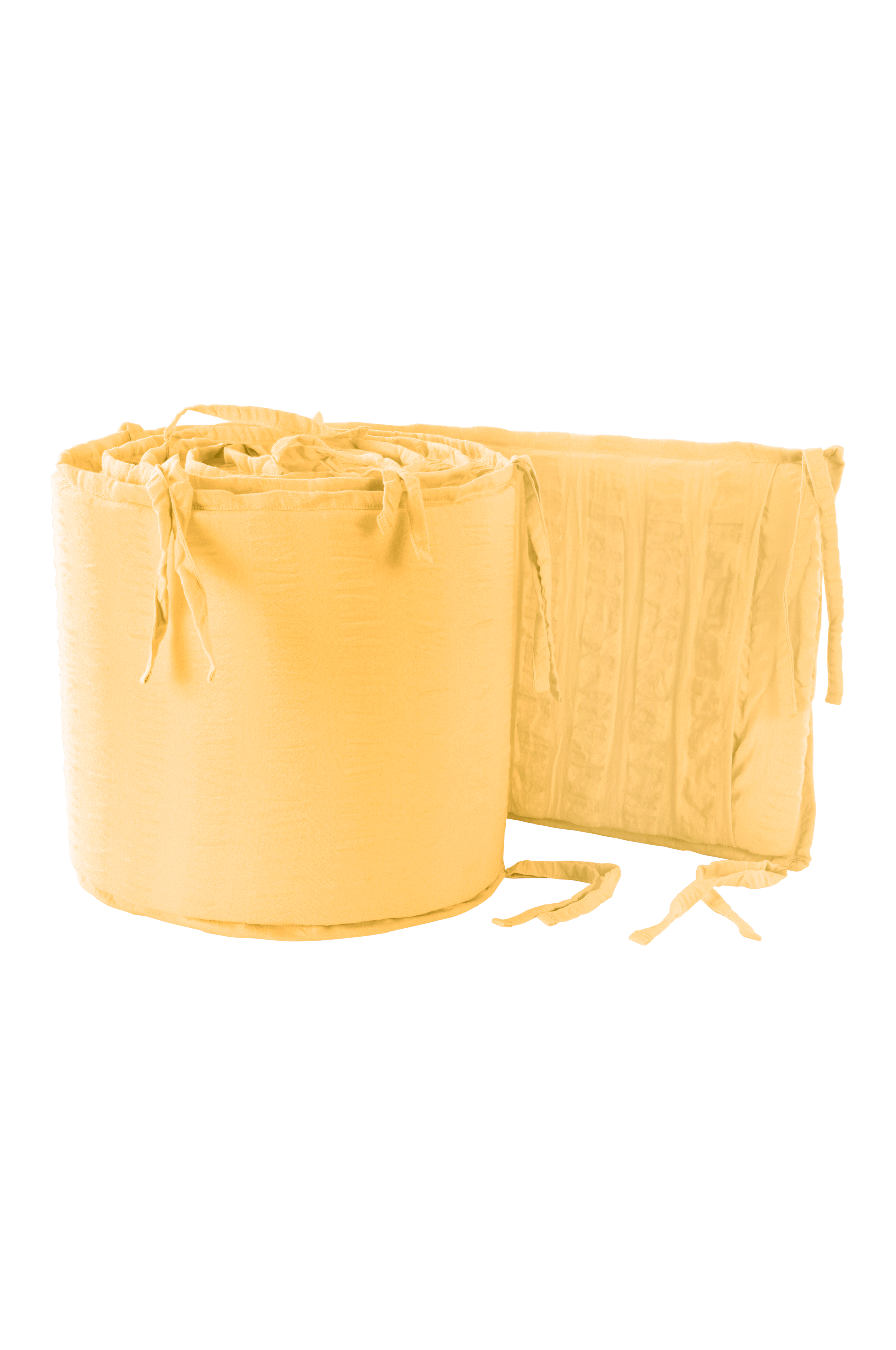 Sprinkelbeskyttelse med ytterstoff i herlig krepp av sertifisert, økologisk bomull. Krepp er en luftig kvalitet, og det boblete stoffet føles svalt og har komfortabel pusteevne. Serien LOLO er ensfarget og samtidig stripete, glattvevd stoff veksles med striper i krepp. Stoffet er garnfarget og vasket for å få en mykere følelse. Fyll av polyuretan med myk skumgummikjerne. Sprinkelbeskyttelsen gjør sprinkelsengen koselig og lun, samtidig som den hindrer at barnet slår mot sprinklene når det sover. Sprinkelbeskyttelsen knytes fast med knytebånd. Ytterstoffet er avtagbart og vaskbart. Stoffets gramvekt 225 g/m².
