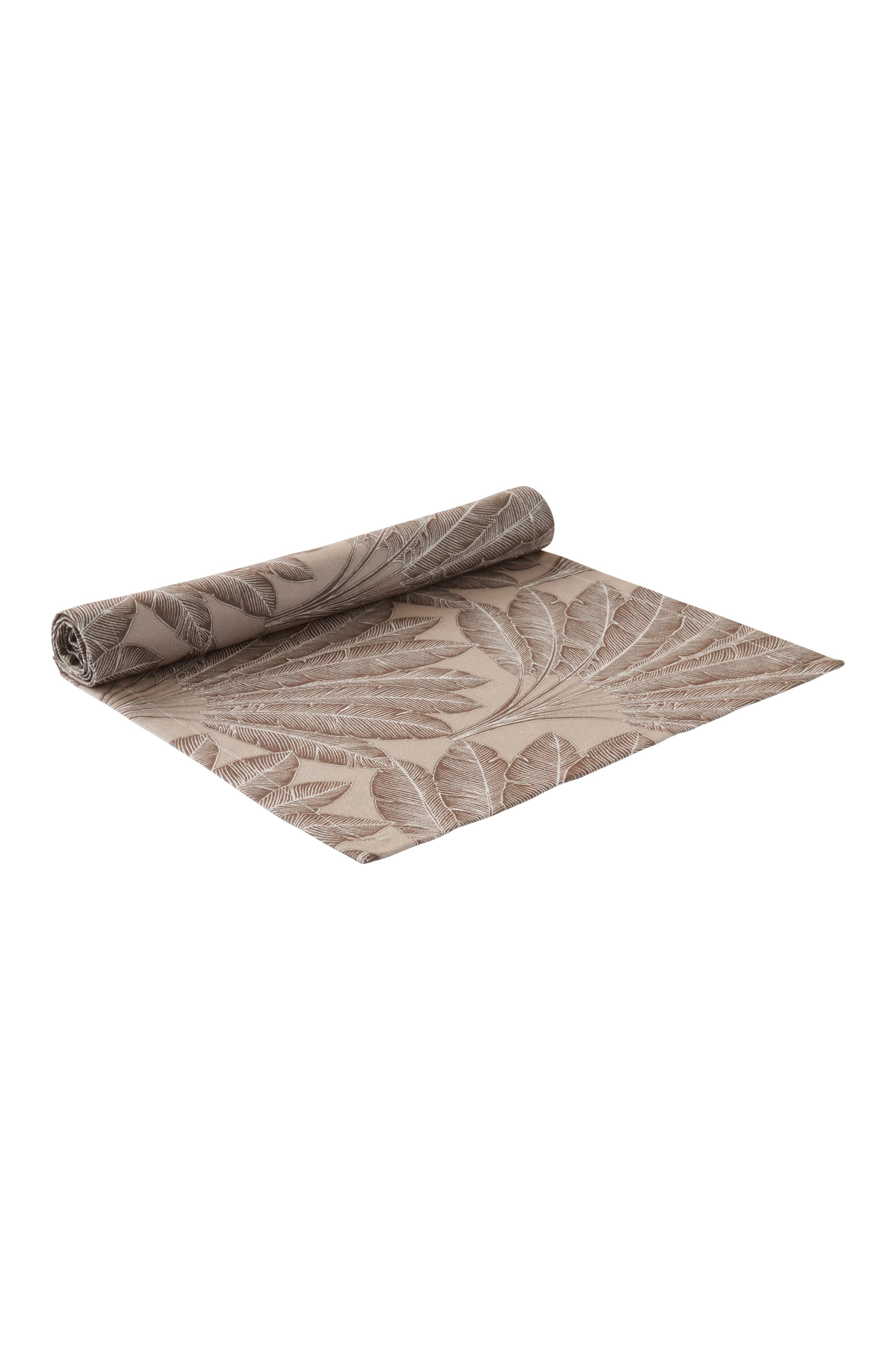 Løper av polyester med suverent mønstertrykk skapt av fjær. Trykket går i en mørkere nyanse enn bunnfargen, og mønsteret oser både spenning og harmoni med et anstrøk av retro.