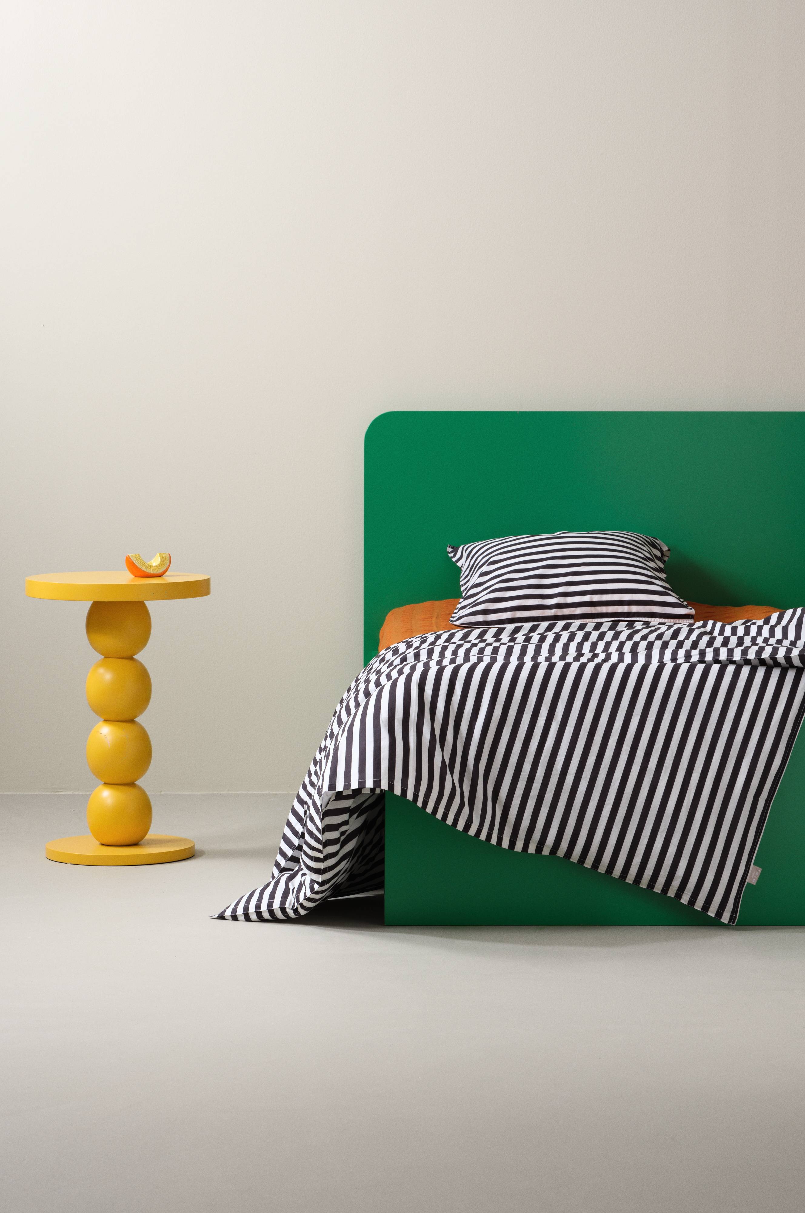 Stripete sengesett i to deler med et dynetrekk og et putevar av økologisk bomull. Sengetøyet i serien LOUSA er fargerikt med digitaltrykte striper. Det gir et mykere og mer distinkt trykk med klarere fargegjengivelse. Det er deilig å sove i økologisk bomull - svalt og mykt mot huden. Åpning øverst i hjørnene på dynetrekket. Det gjør det lettere å tre dynetrekket over dynen. Trådtetthet på 180 tc. (Trådtettheten forteller om antallet tråder, thread counts, pr. kvadrattomme i et stoff. Jo høyere trådtetthet, desto høyere kvalitet. Unntaket er lin som ofte veves løsere for å få den riktige følelsen.)