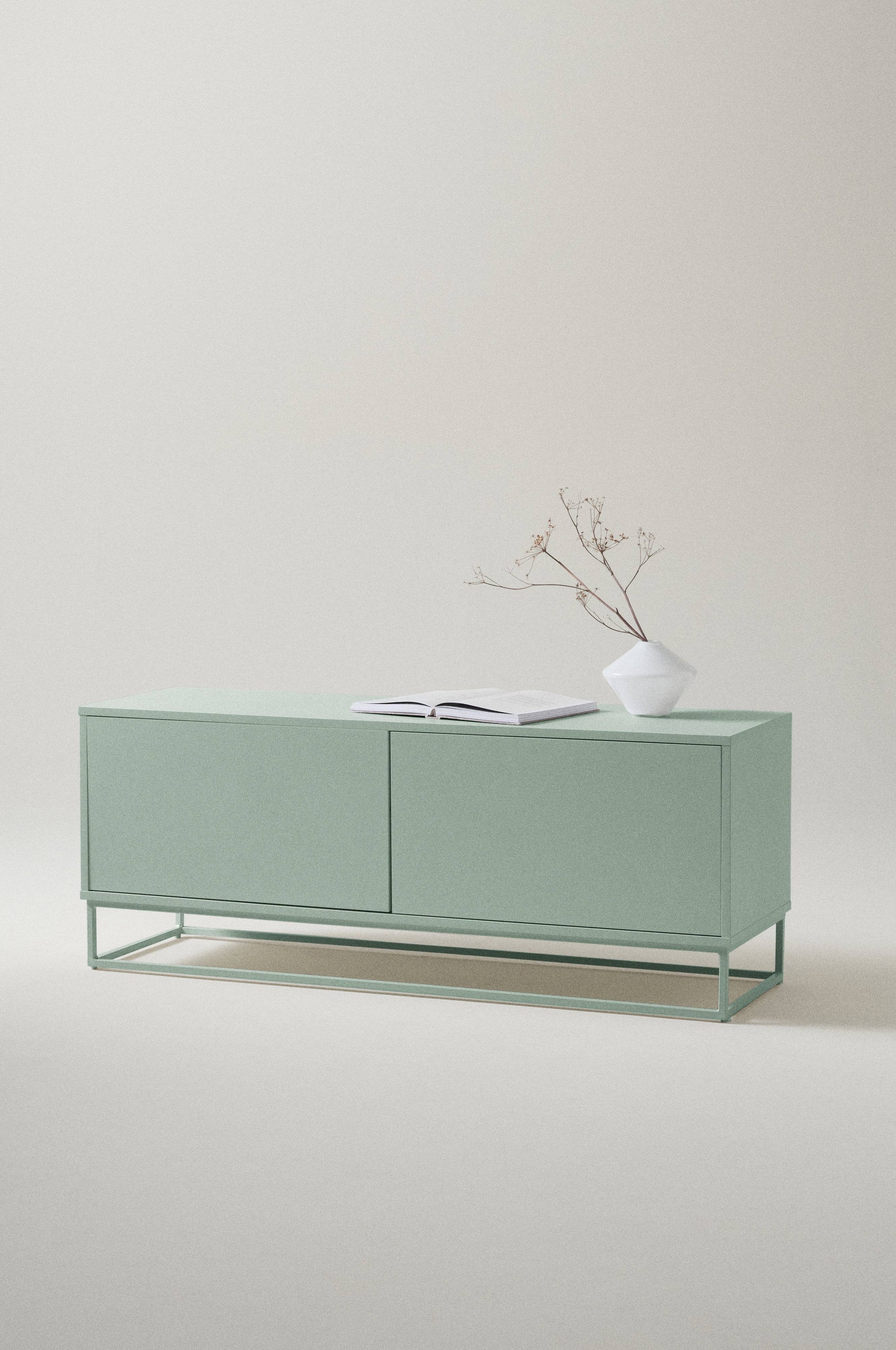 Stilren tv-benk i MDF med stamme av metall. LYCKEBY har et nedtonet og moderne design med to praktiske dører med pushfunksjon. Tv-benken har hull bak med plass til ledninger. Noe montering kreves. Monteringsanvisning medfølger.