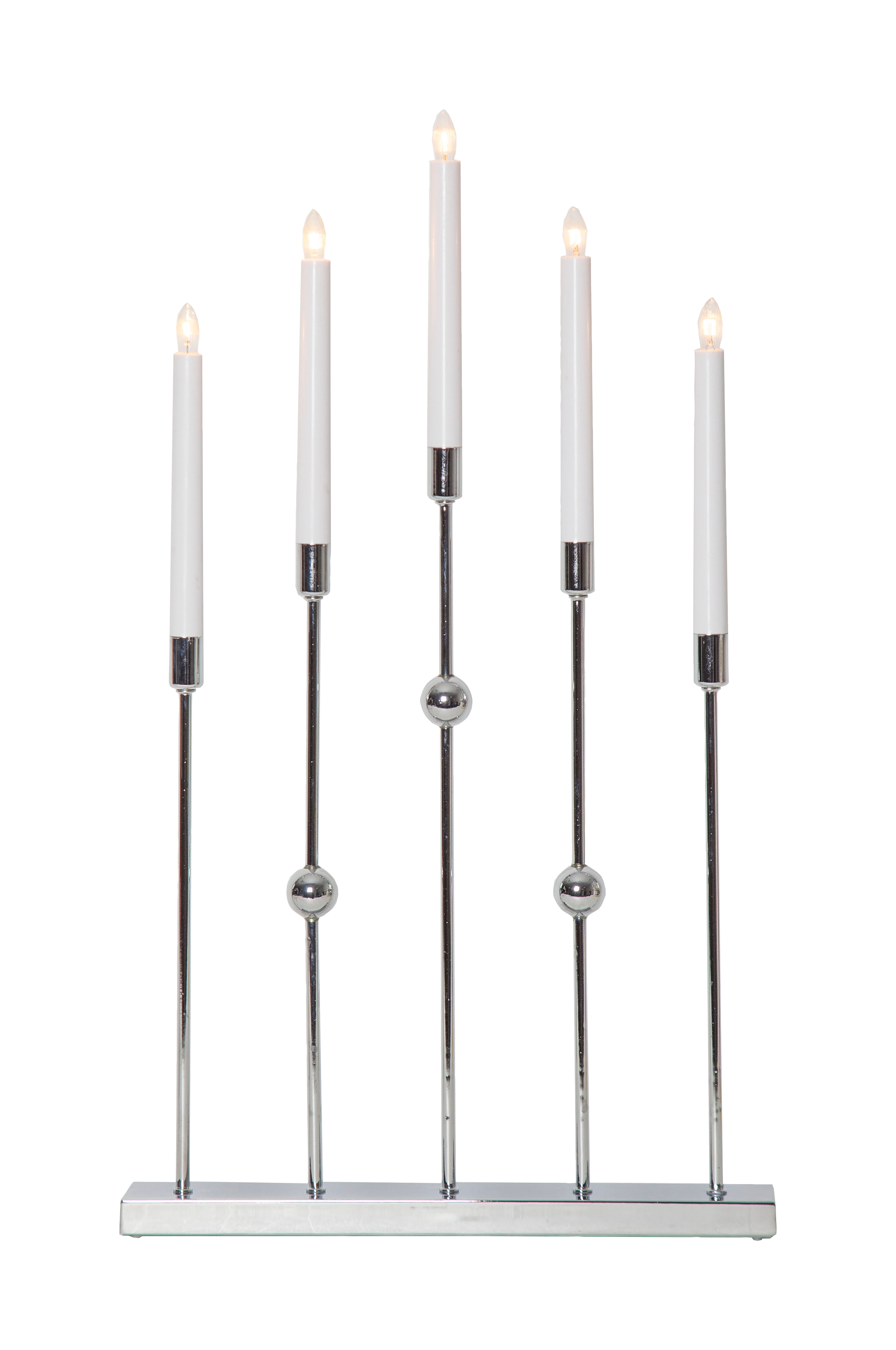 Stilfull adventslysestake i metall. Lysestaken har 5 lyskilder med et koselig lys. Plasser den i vinduskarmen eller på en skjenk, perfekt til advent og jul.