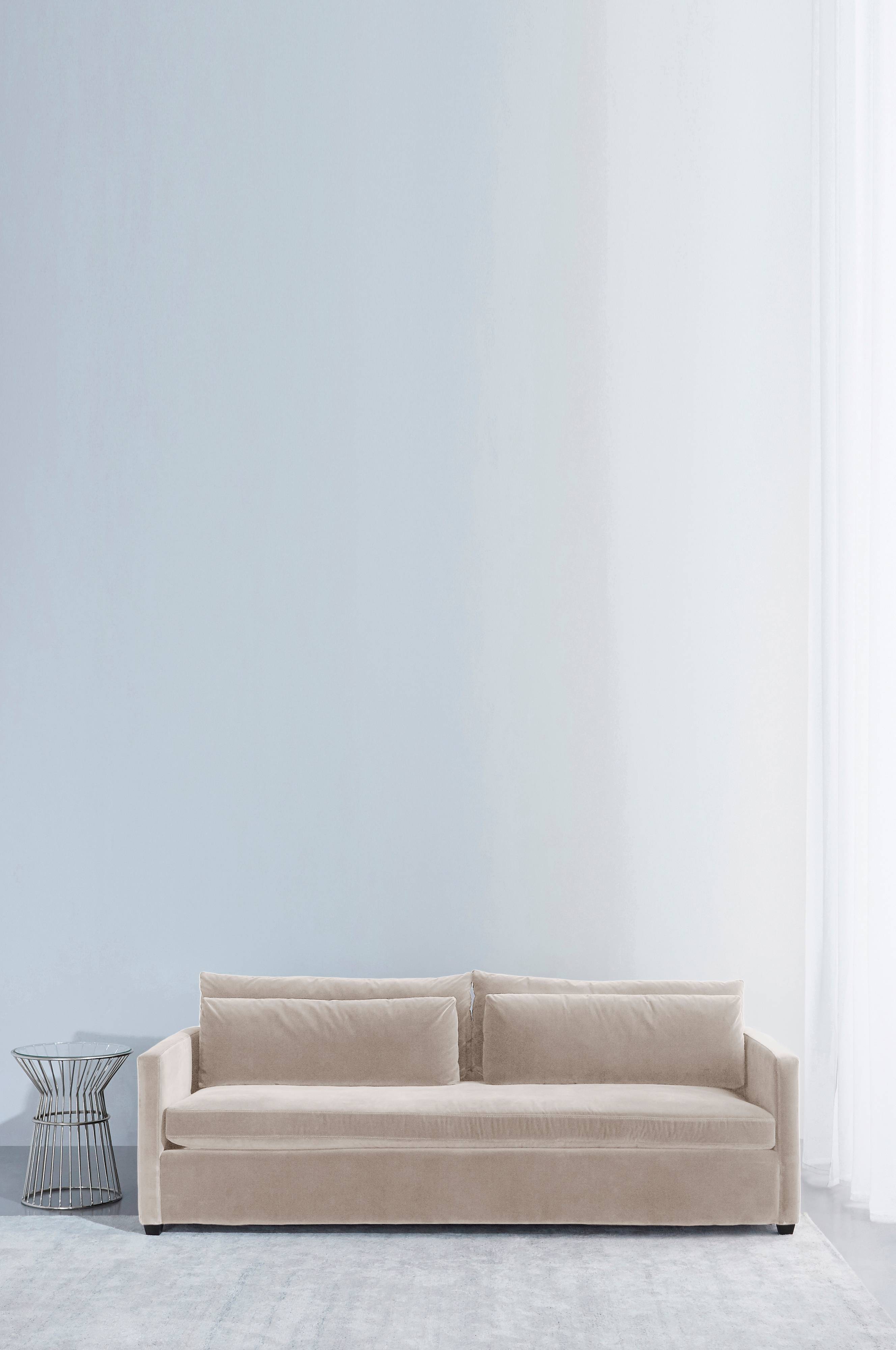 MANHATTAN 3-seter sofa er en stilren, elegant fløyelssofa med en stor sittepute og to ryggputer som inviterer til sofakos. Her kan man krype oppi med fredagssnacksen og bli lenge. Med sine rene linjer og enkle uttrykk passer den inn i de fleste hjem. Den vakre fløyelsfargen i 90% bomull og 10% polyester passer mange forskjellige puter og pledd. Stammen er av massiv furu og kryssfiner for ekstra stabilitet, og sammen med sikksakk-fjæringen har MANHATTAN en jevn og fast sittekomfort over hele sofaen til tross for en eneste, stor sittepute. Ryggputene er kraftig stoppet med 50% fjær og 50% polyuretanskum for absolutt beste sittekomfort. Martindale: 30 000.