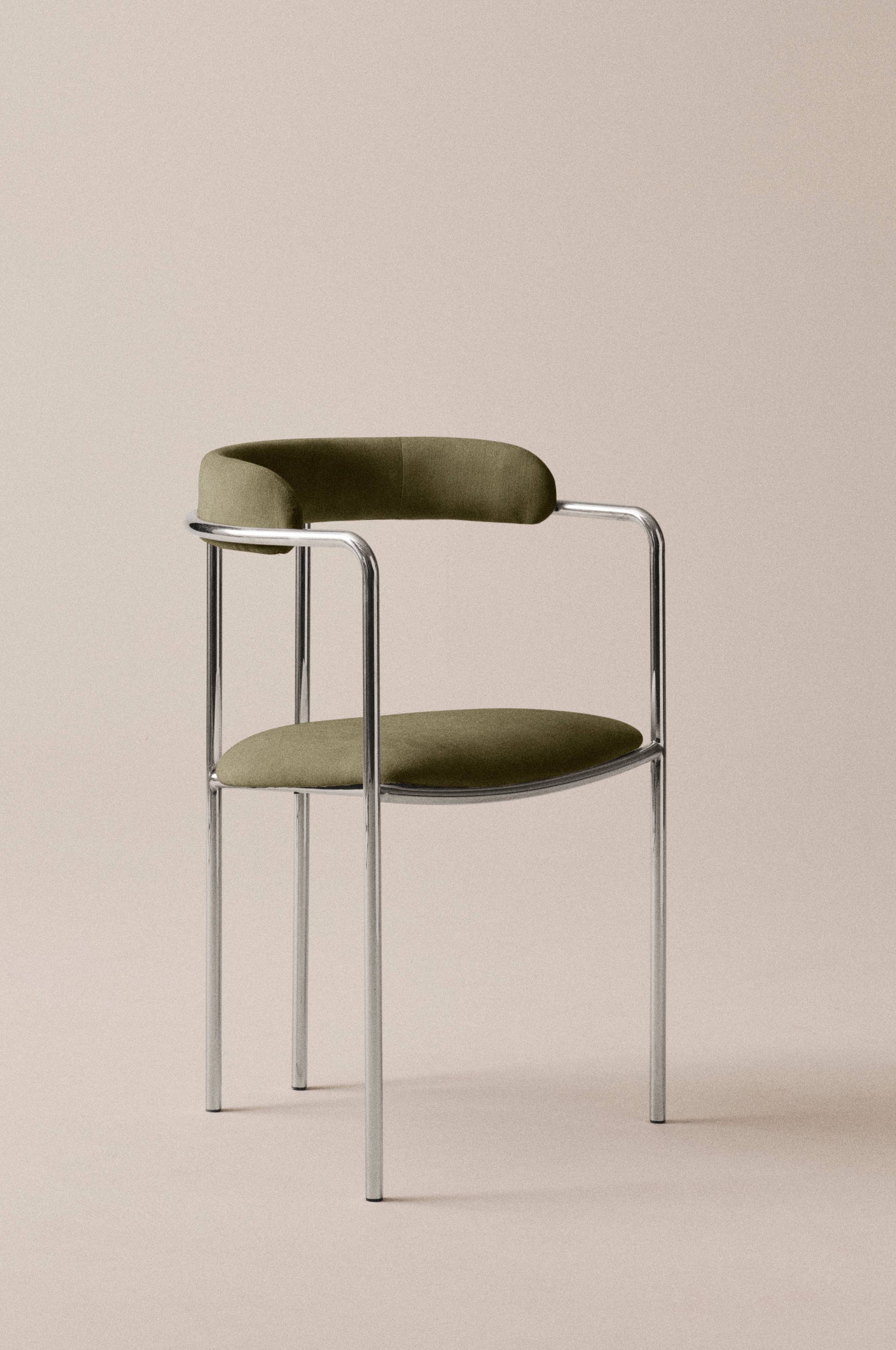 MARYLAND er en stilig og tidløs armstol, en elegant kombinasjon av forkrommet stål og mykt chenillestoff. Armstolens sete og nette ryggstø har stamme av MDF som er behagelig mykstoppet og med fint chenilletrekk. MARYLAND er en stol som du med fordel kan plassere til pynt i åpne rom, i gang eller stue. Den gjør seg fint på soverommet. Å møblere med MARYLAND rundt et matchende spisebord gir deg en sober og elegant spisestue, hvor man kan nyte lange deilig middager sammen med venner.