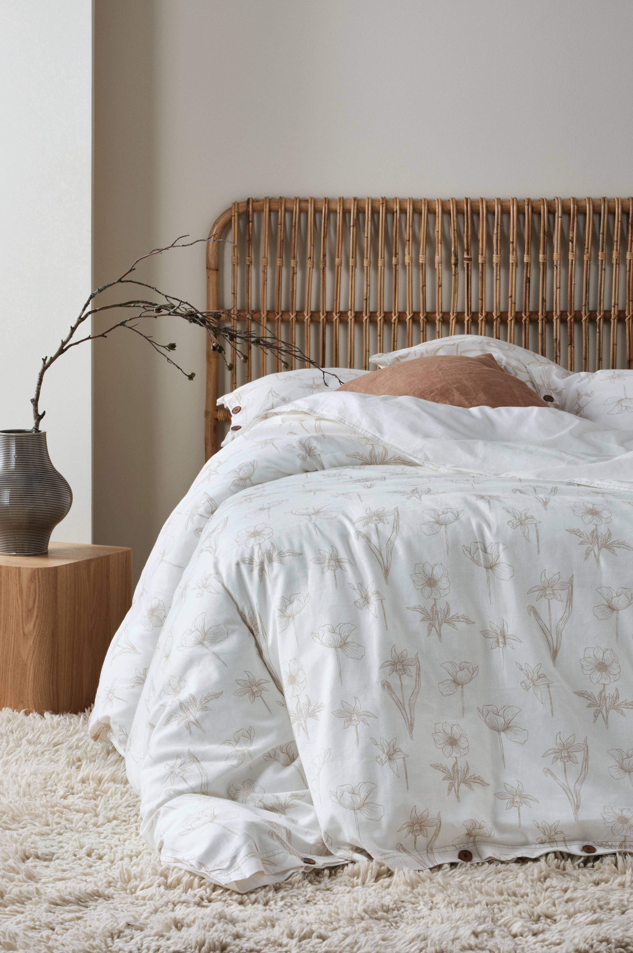 Sengesett i 3 deler i fin kvalitet av bomull og lin. Den deilige kvaliteten forener bomullens mykhet med linets naturlige varme. Stoffet er vasket for å bli ekstra komfortabelt. MEADOW er vendbart og har lett blomstertrykk med herlig vårfølelse på den ene siden, den andre siden er ensfarget. Dynetrekk og putevar har dobbeltsøm rundt, og sømmene er dekorative i seg selv da de matcher fargen på trykket. Plastknapper som ligner tre for lukking. Trådtetthet på 80 tc. (Trådtettheten forteller om antallet tråder, thread counts, pr. kvadrattomme i et stoff. Jo høyere trådtetthet, desto høyere kvalitet. Unntaket er lin som ofte veves løsere for å få den riktige følelsen.)