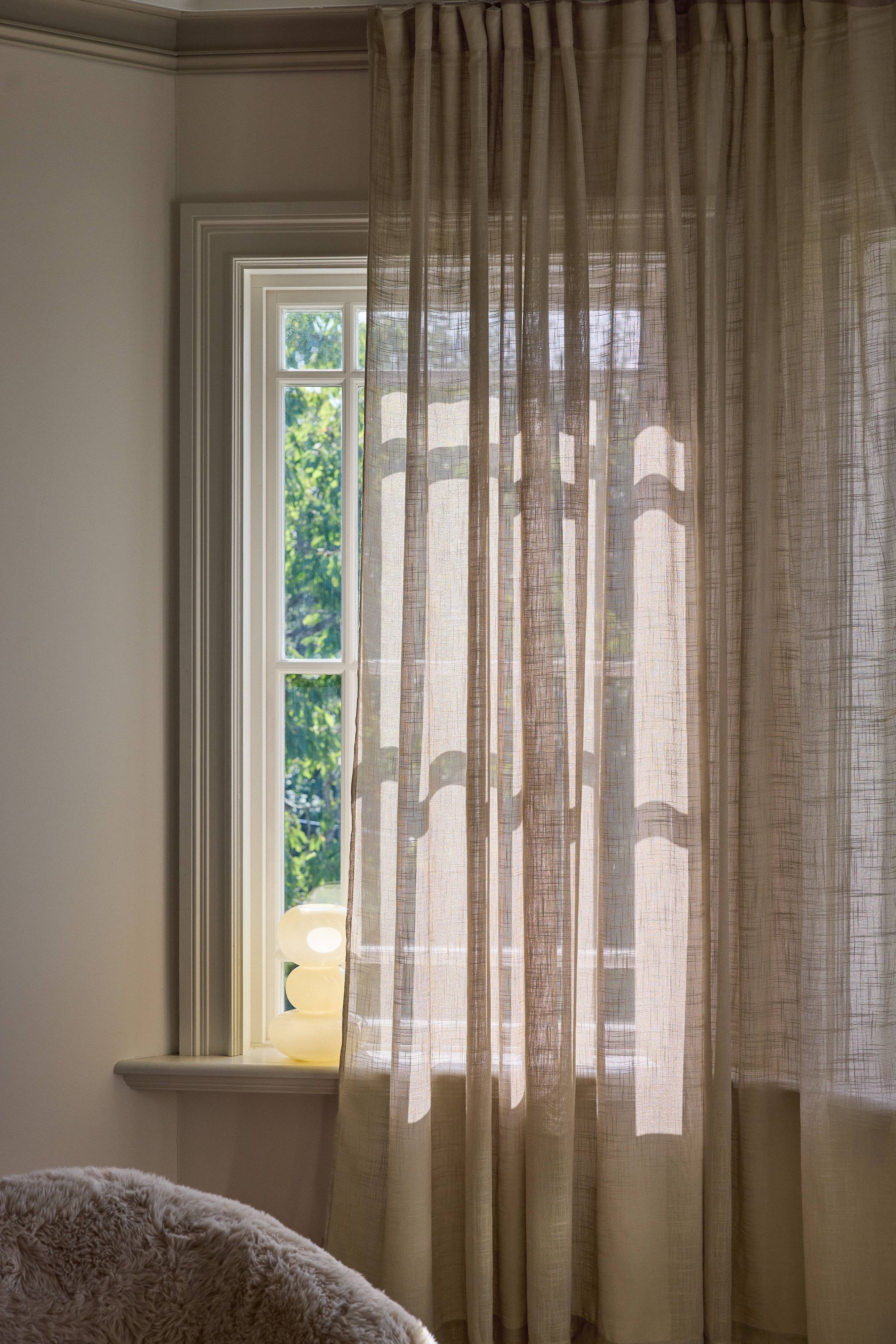 MELISSA gardin i bred bredde gir moderne eleganse til interiøret ditt, og forener moderne stil med et tidløst utseende. Den er laget av strukturert linlignende polyester med 60 % resirkulert materiale, har et luksuriøst fall og gir en varm og innbydende atmosfære. MELISSA er ideell for deg som ønsker trenddrevet design, og tilfører ethvert rom et streif av raffinement, noe som gjør den til et must-have for å friske opp innredningen i hjemmet ditt. Selges i en pakke med én lengde.