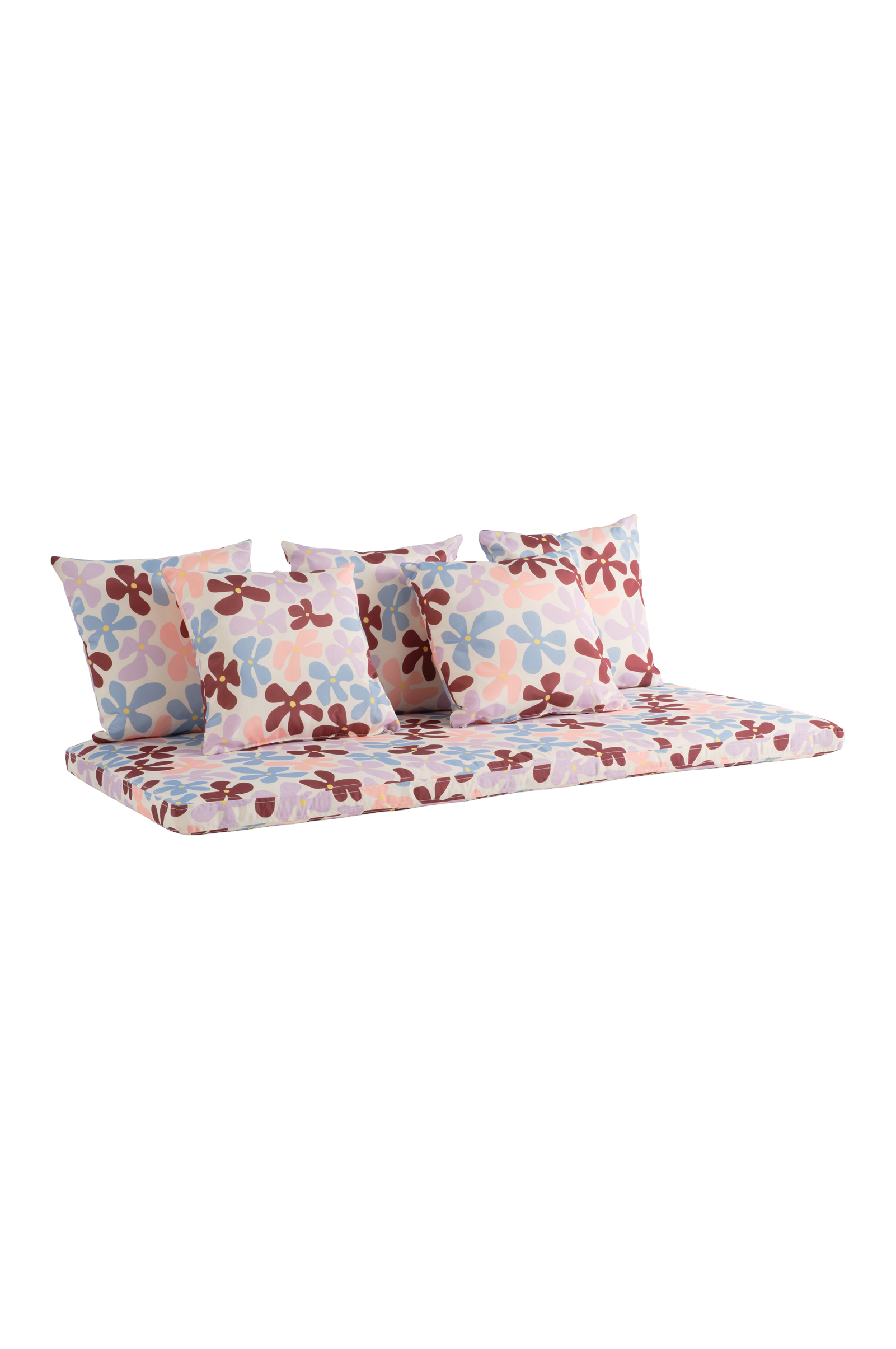 MENTON putesett-sofaen tilbyr komfort og stil for alle utemøbler. Sofaen har et elegant design med tre myke puter, og er perfekt for avslapning og sammenkomster. Mønsteret gir en levende stil og skaper en innbydende atmosfære. Sofaen er designet for å utfylle en rekke ulike interiører, og gjør rommet ditt både enkelt og sjarmerende. Ideell for komfort og eleganse i hverdagen.