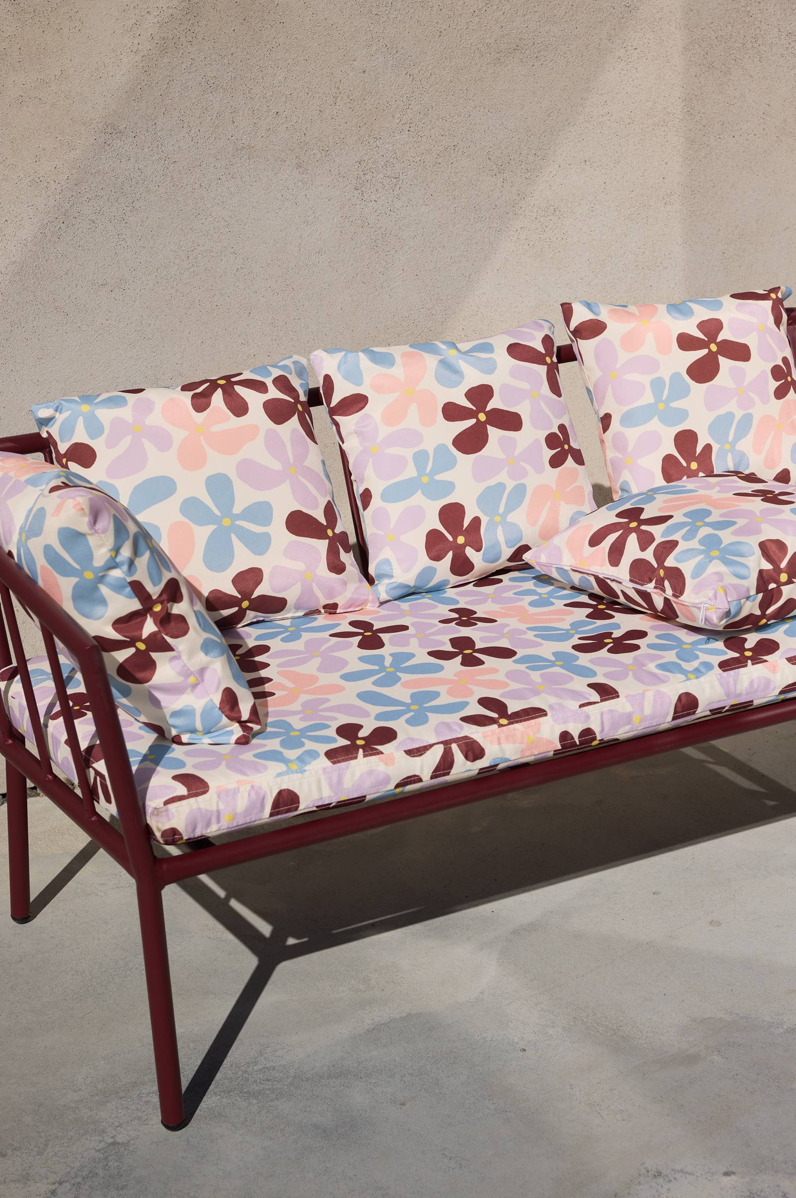MENTON putesett-sofaen tilbyr komfort og stil for alle utemøbler. Sofaen har et elegant design med tre myke puter, og er perfekt for avslapning og sammenkomster. Mønsteret gir en levende stil og skaper en innbydende atmosfære. Sofaen er designet for å utfylle en rekke ulike interiører, og gjør rommet ditt både enkelt og sjarmerende. Ideell for komfort og eleganse i hverdagen.