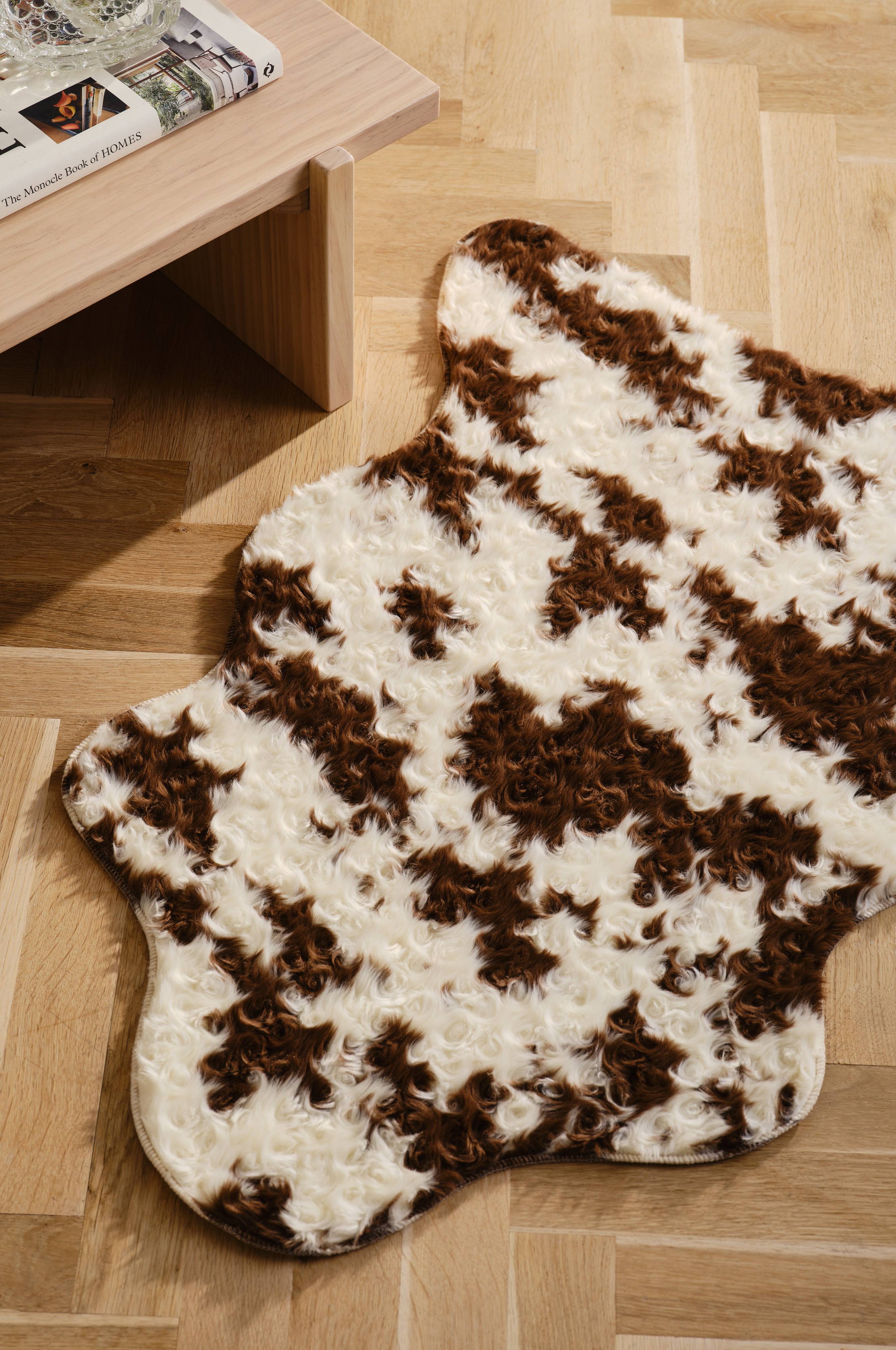 MOO teppe i fuskepels er et mykt og koselig tilskudd til interiøret med sitt sjarmerende ku-mønster. Dette teppet i fuskepels er designet for å øke komforten og gir et rustikt preg til ethvert rom. De sklisikre prikkene på baksiden sørger for at teppet ligger godt på plass og er både stilfullt og praktisk. Dette teppet er perfekt for å skape en varm og innbydende atmosfære, og er et ideelt valg for trendy interiørdesignentusiaster.