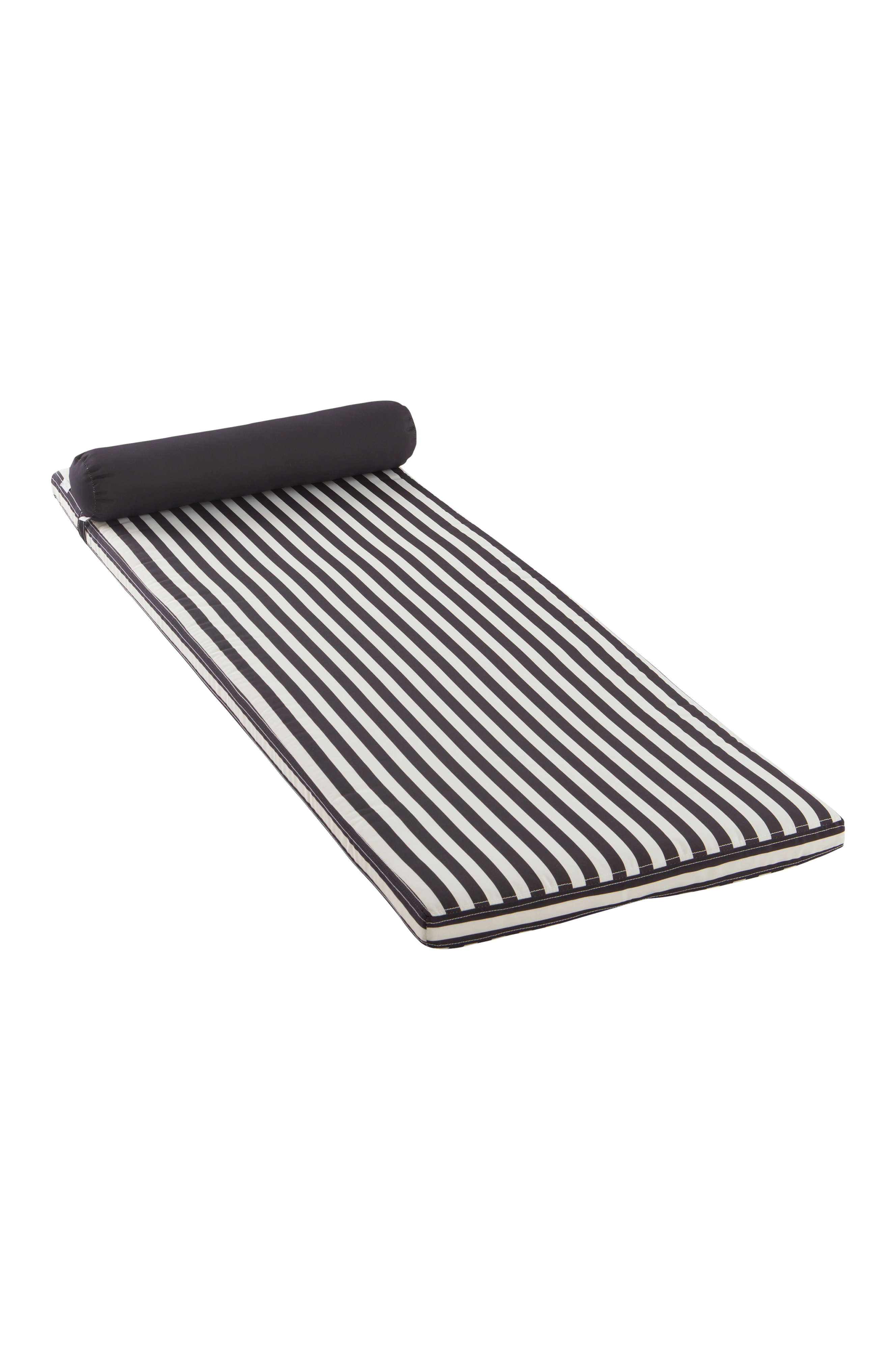 Stripete madrass til solsengen. Til madrassen medfølger en behagelig, ensfarget pute. Stoffet er av polyester med trykt stripemønster og vannavvisende belegg. Madrassen har skumfyll. Trekket har glidelås og er avtagbart. Stoffets slitestyrke 30 000 Martindale.