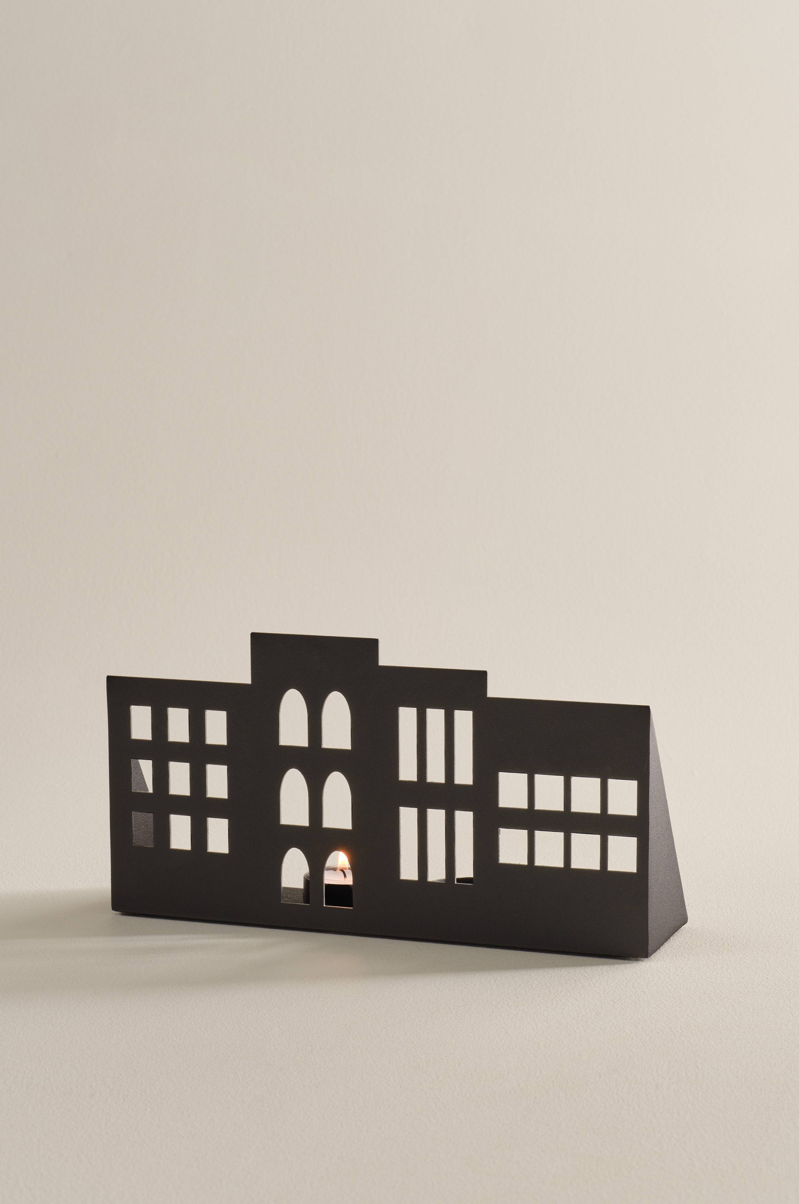 Lyslykt i jern utformet som en hussilhuett. Denne stilige lykten har fire lysholdere og skaper en varm, innbydende atmosfære. Ideell for koselig innredning i hjemmet.