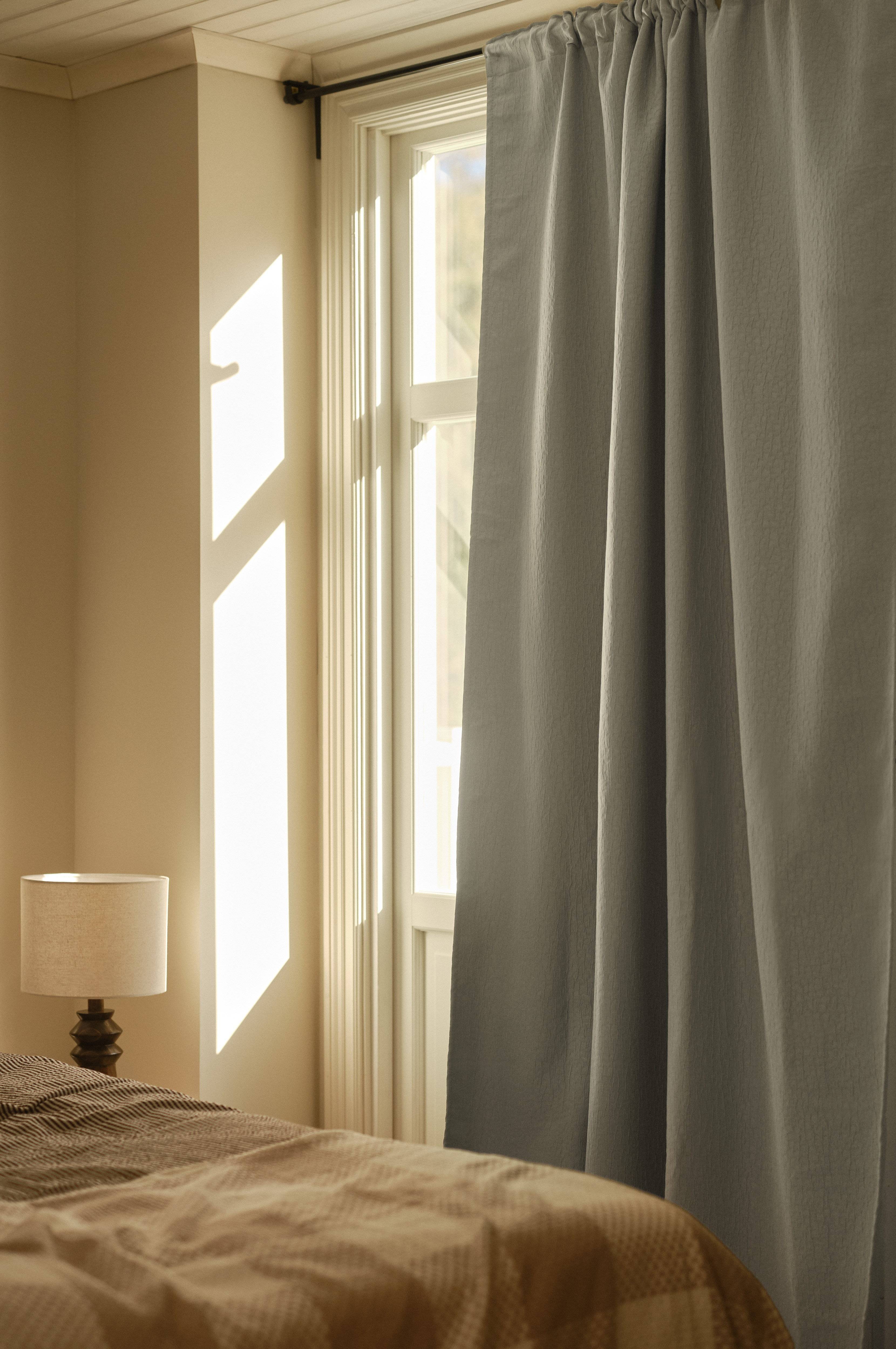 En gardinlengde for mørklegging, produsert av polyester. Gardinen er tettvevd slik at det ikke er nødvendig med belegg på baksiden. NOCTIS har boblete overflate, og faller fint når du henger den opp. På dagtid drar du lengden til siden og får inn lyset. Vær oppmerksom på at de ulike fargene varierer i lystetthet. Multifunksjonsbåndet gir deg muligheten til å variere opphengingen med skjult hempe, kanal samt foldebånd for fingerkroker.