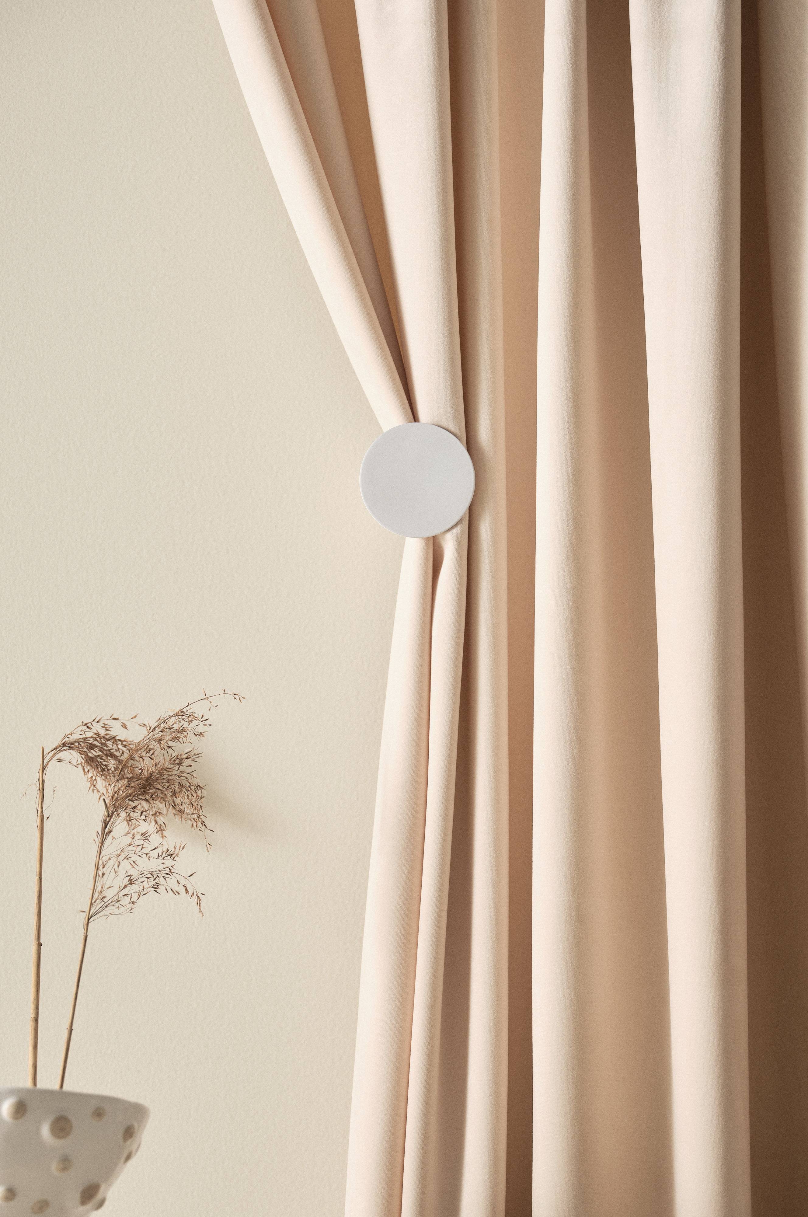 2-pk holdere av metall. En diskre holder å holde gardinlengden bak og lengden løftes enkelt ned om du vil ha innsynsbeskyttelse. NOLIE gir et stilrent oppheng. Skruer og plugg inngår.