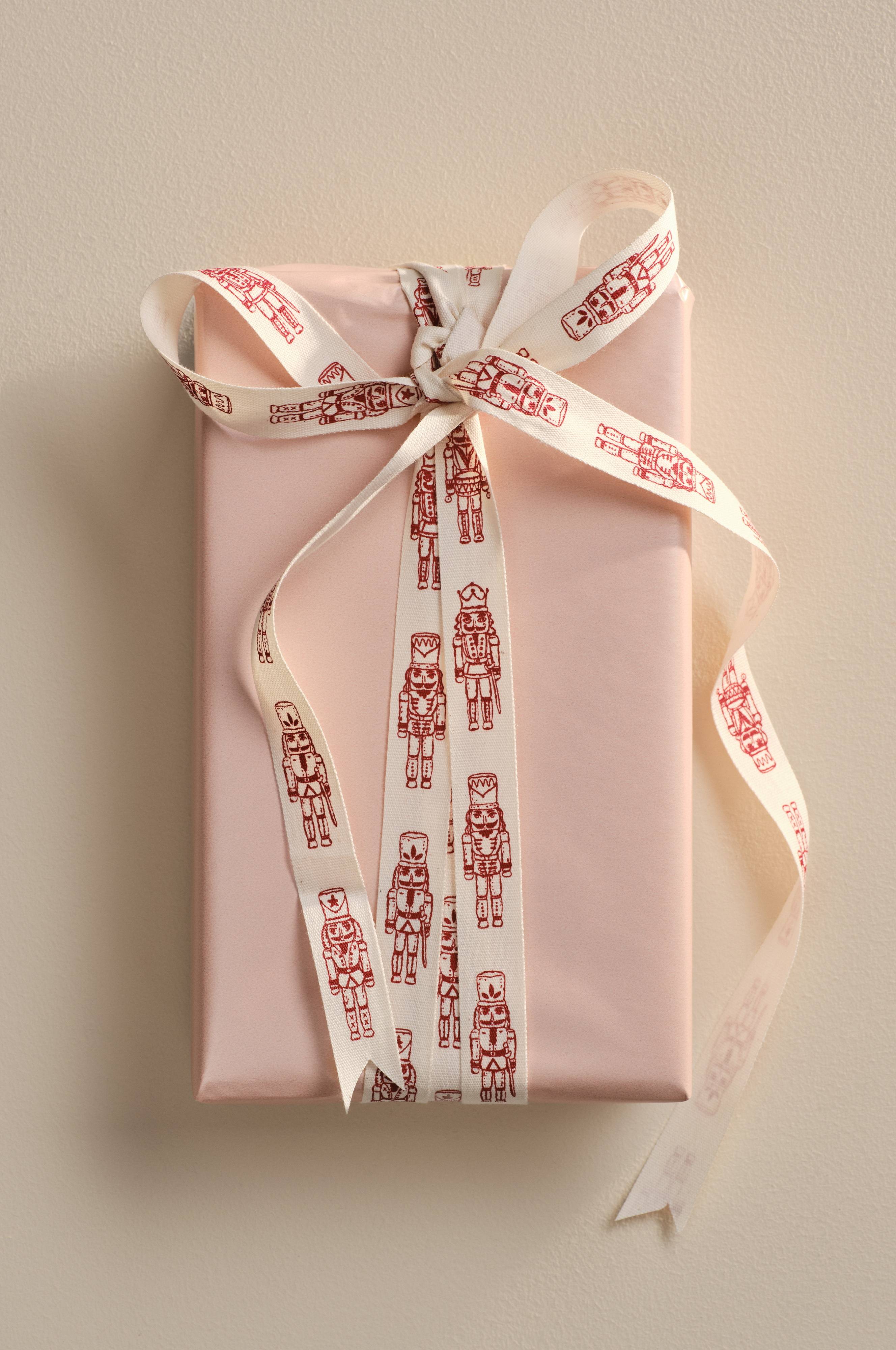 Bomullsbånd med sjarmerende nøtteknekkere påtrykt, perfekt til festlig gaveinnpakning og juledekorasjoner. Tilfør et snev av julemagi til gavene dine og innredningen i hjemmet uten problemer.