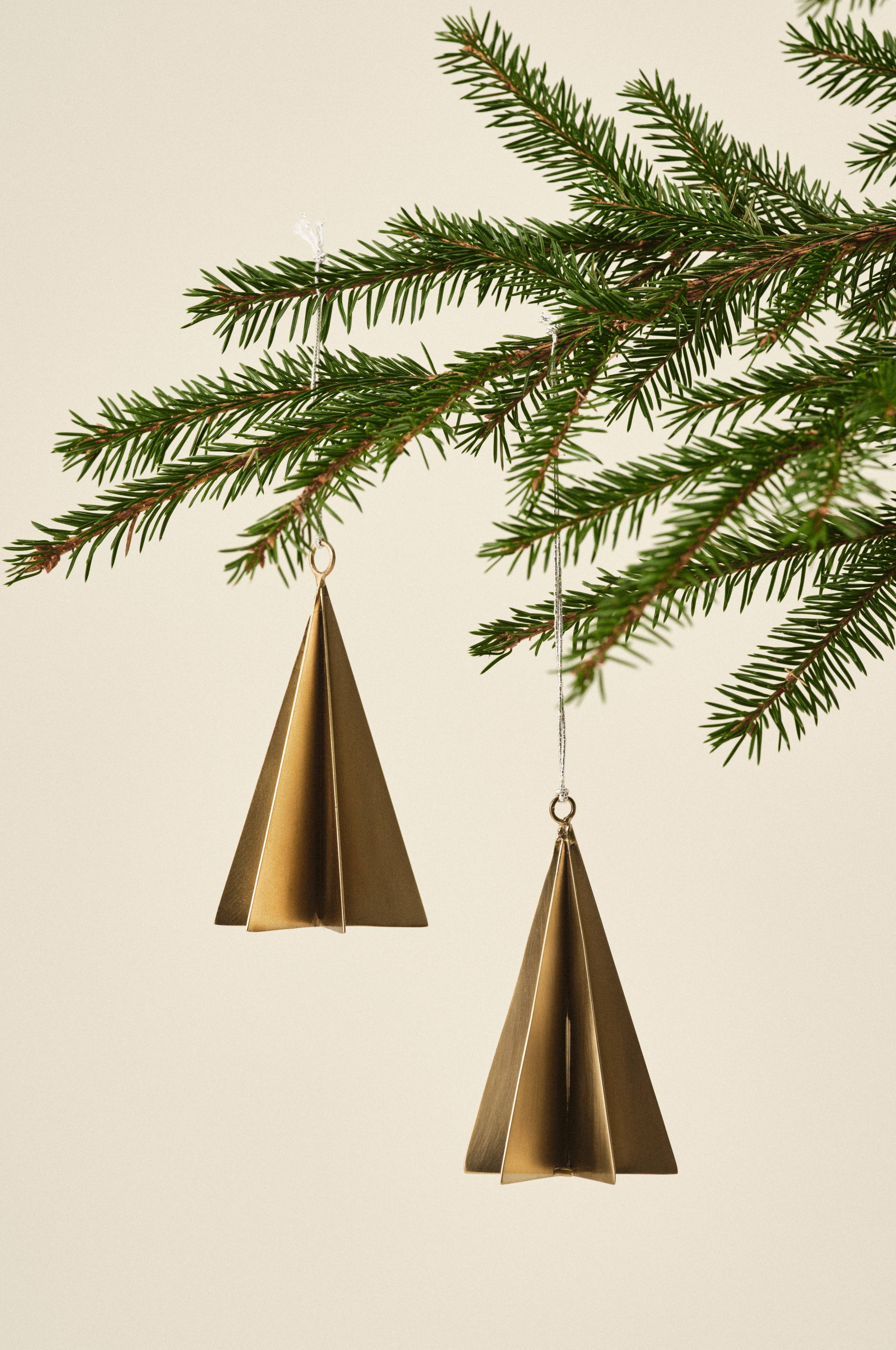 2-pk med dekor av stål. De stiliserte trærne har løkke og snor øverst slik at du kan henge de opp i et vindu, i juletreet eller der du vil pynte litt ekstra.