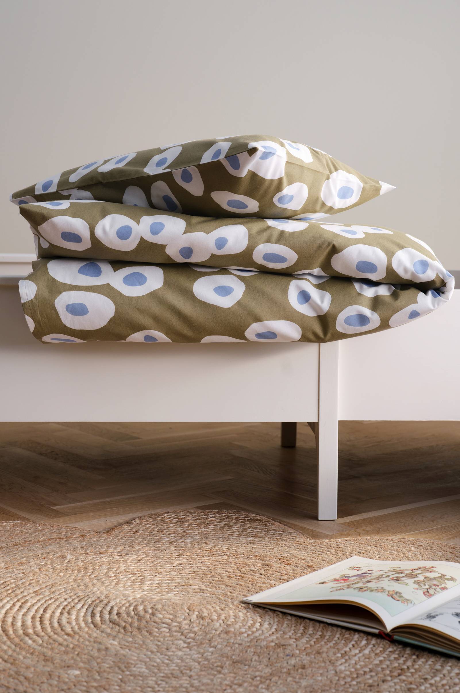 OVO MINI sengesett gir et lekent preg til barnerommet ditt med sitt unike speilegginspirerte mønster av Maria Carlberg. Settet er laget av økologisk bomull og består av et dynetrekk og et putevar som passer perfekt til barnesenger. Det livlige pigmenttrykte designet gir en retrostil til barnets rom. Koordiner enkelt med matchende sengesett for voksne for et helhetlig utseende. Ideelt for deg som setter pris på trendy interiørdesign.