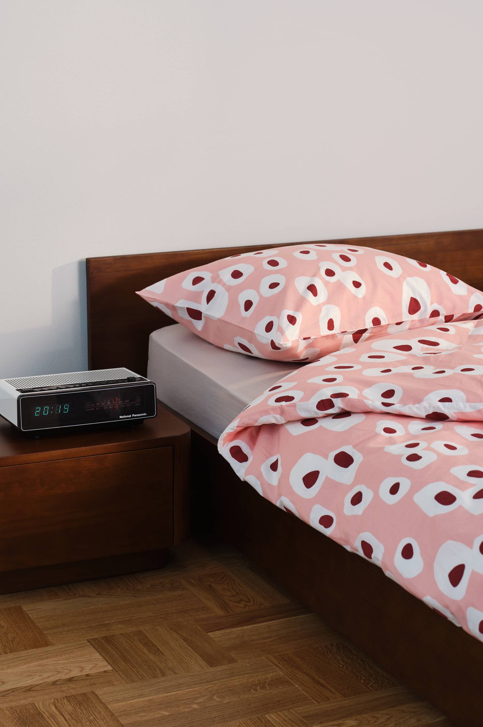 OVO sengesett skaper et lekent soverom med sin unike design. Settet er laget av økologisk bomull og består av et dynetrekk og et putetrekk med et sjarmerende mønster av Maria Carlberg. Inspirert av det herlige utseendet til stekte egg, gir det pigmenttrykte designet en morsom touch til rommet ditt. Perfekt for deg som setter pris på kreativ og særpreget innredning i avslappende omgivelser.