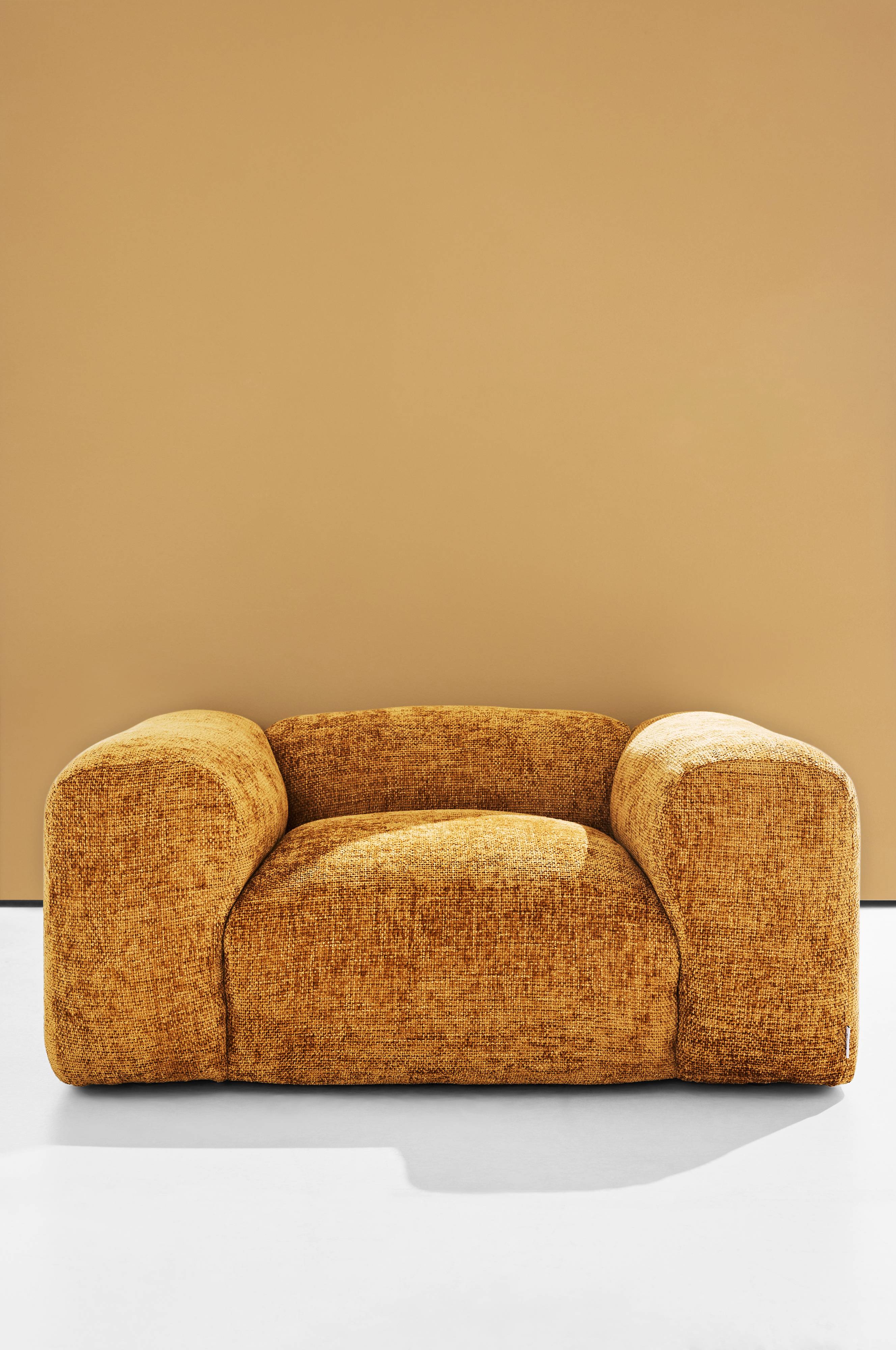 Wenju er en lav, romslig og komfortabel lenestol. Det er lett å krølle seg sammen og trekke opp beina, superkoselig. Et lag med dun dekker sete og rygg og gir en myk og lun følelse.