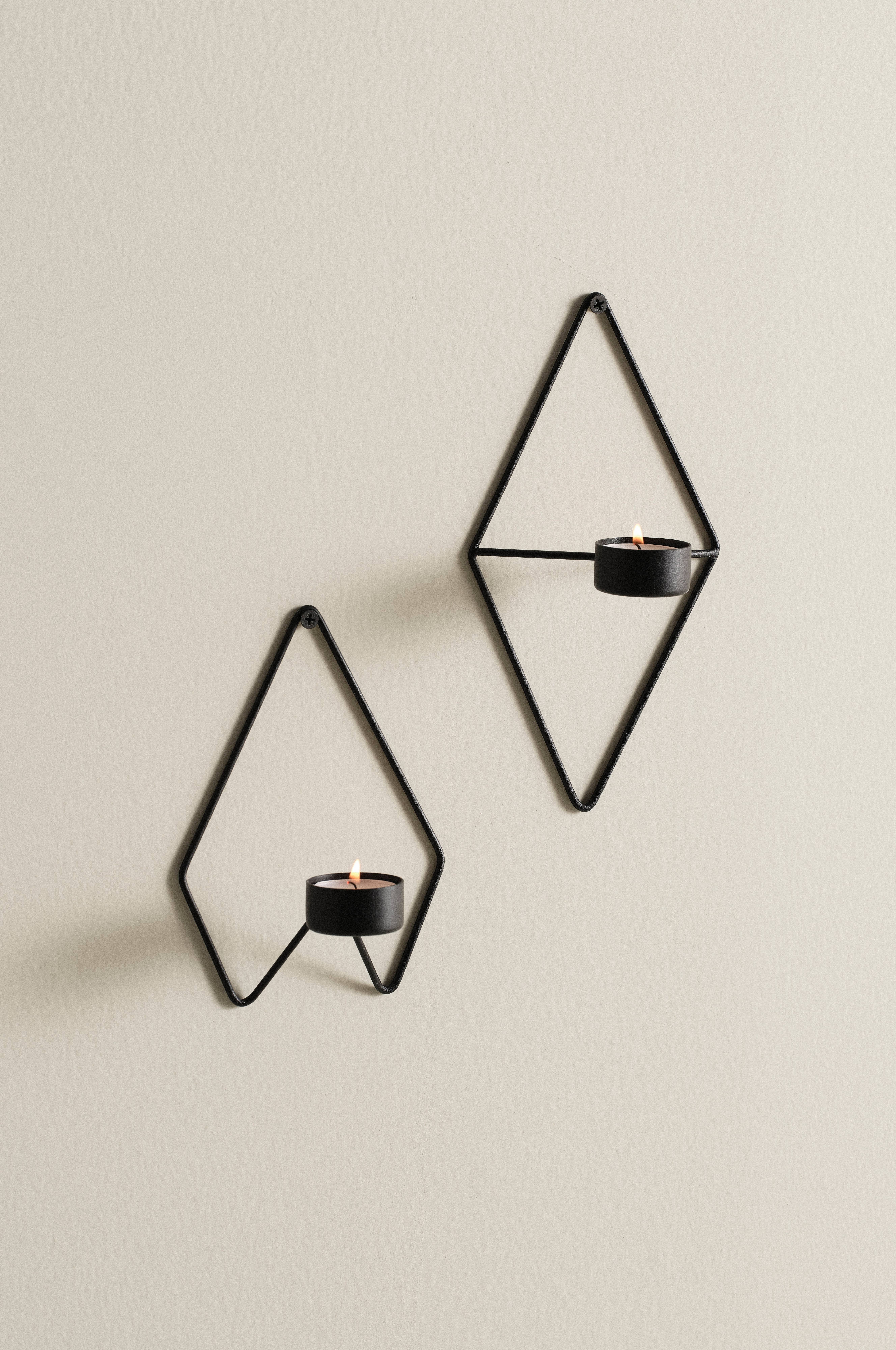2-pk vegglysestaker av jern. Lysestaker til telys med enkel og pen form. Overflaten er pulverlakkert. De skrues opp på veggen, skruer ikke inkludert. Lys medfølger ikke.