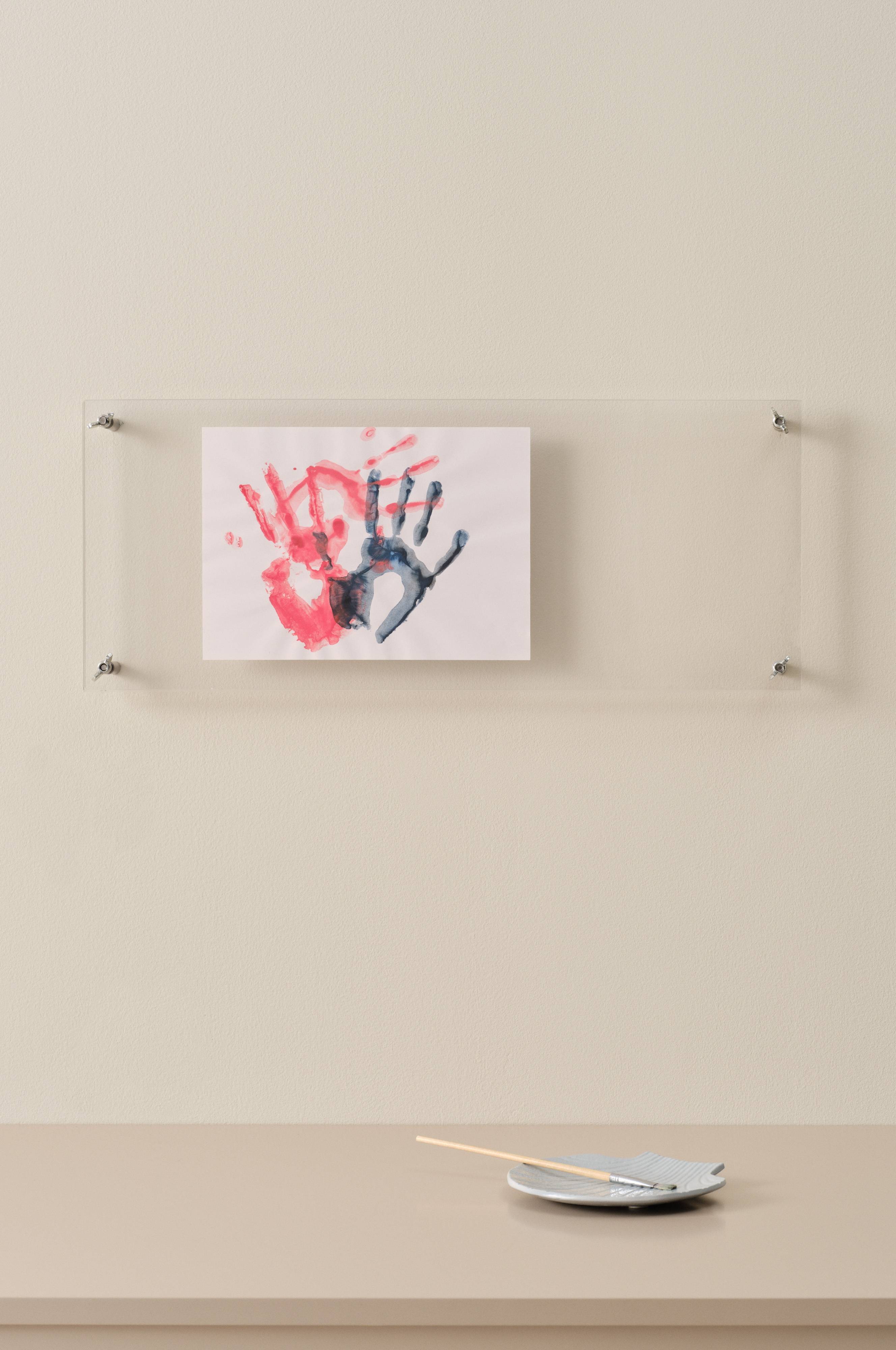 PERLA-rammen i akryl med elegant design har to akrylglassplater som skaper en elegant oppbevaringsskjerm. Den er ideell for stuen og er perfekt for å vise frem barnas kunstverk. Akrylrammen kan enkelt henges opp på veggen, utenfor barns rekkevidde. Merk at det ikke er et leketøy. Gi hjemmet ditt et moderne preg med den allsidige og praktiske PERLA-rammen.