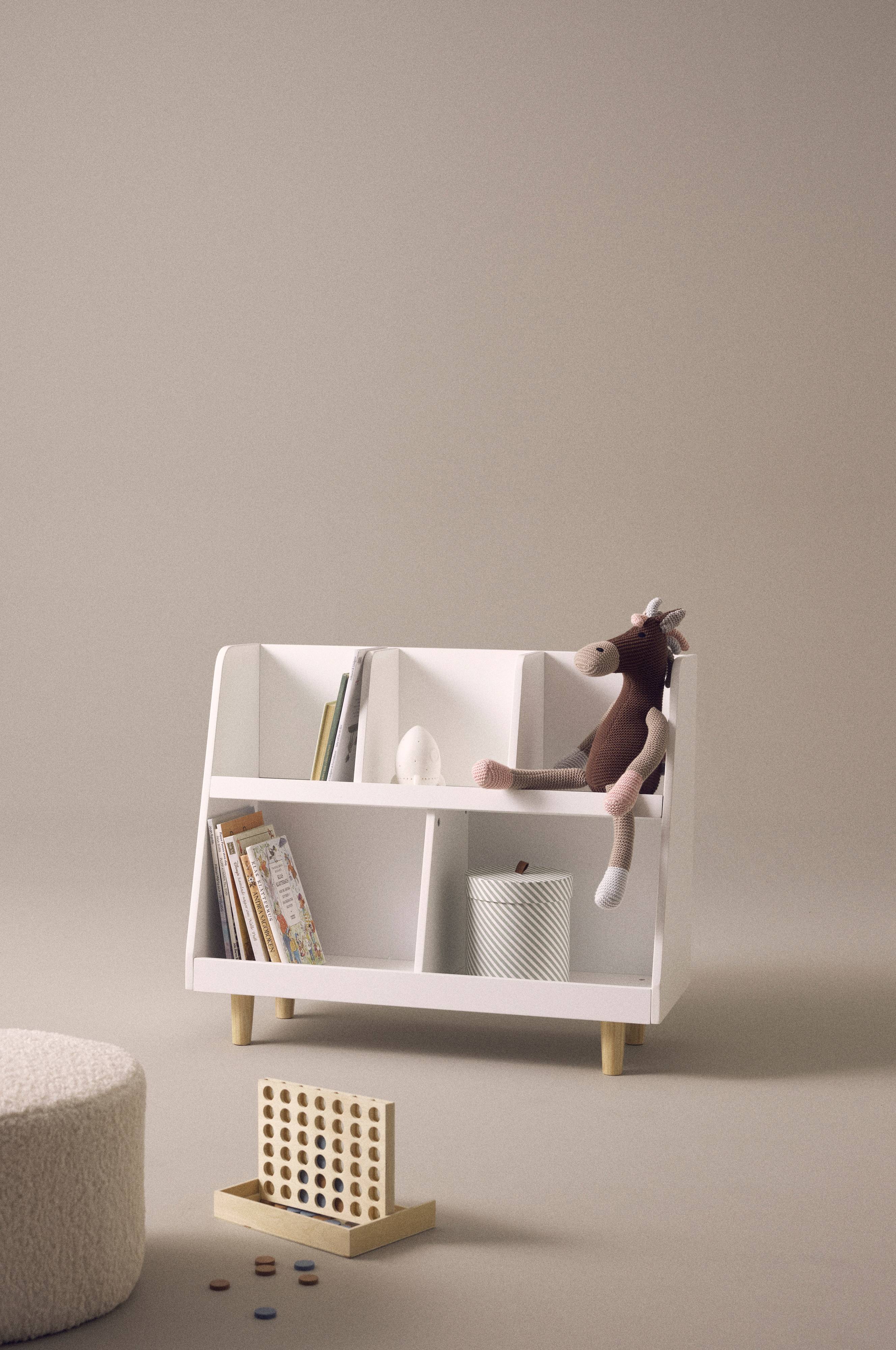 PONCE er en bokhylle av FSC-merket furu og MDF. Den er malt med vannbasert maling som gir en lettstelt overflate. Bokhyllen er svært sjarmerende og litt spesiell i formen, praktisk til både bøker og leker. Bokhylle er dypere nederst, og er inndelt i fem rom som alle har en list i forkant. Det gir en viss stopp for leker og annet. Bena er trefargede og gir retrofølelse. Noe montering kreves. Monteringsanvisning medfølger.