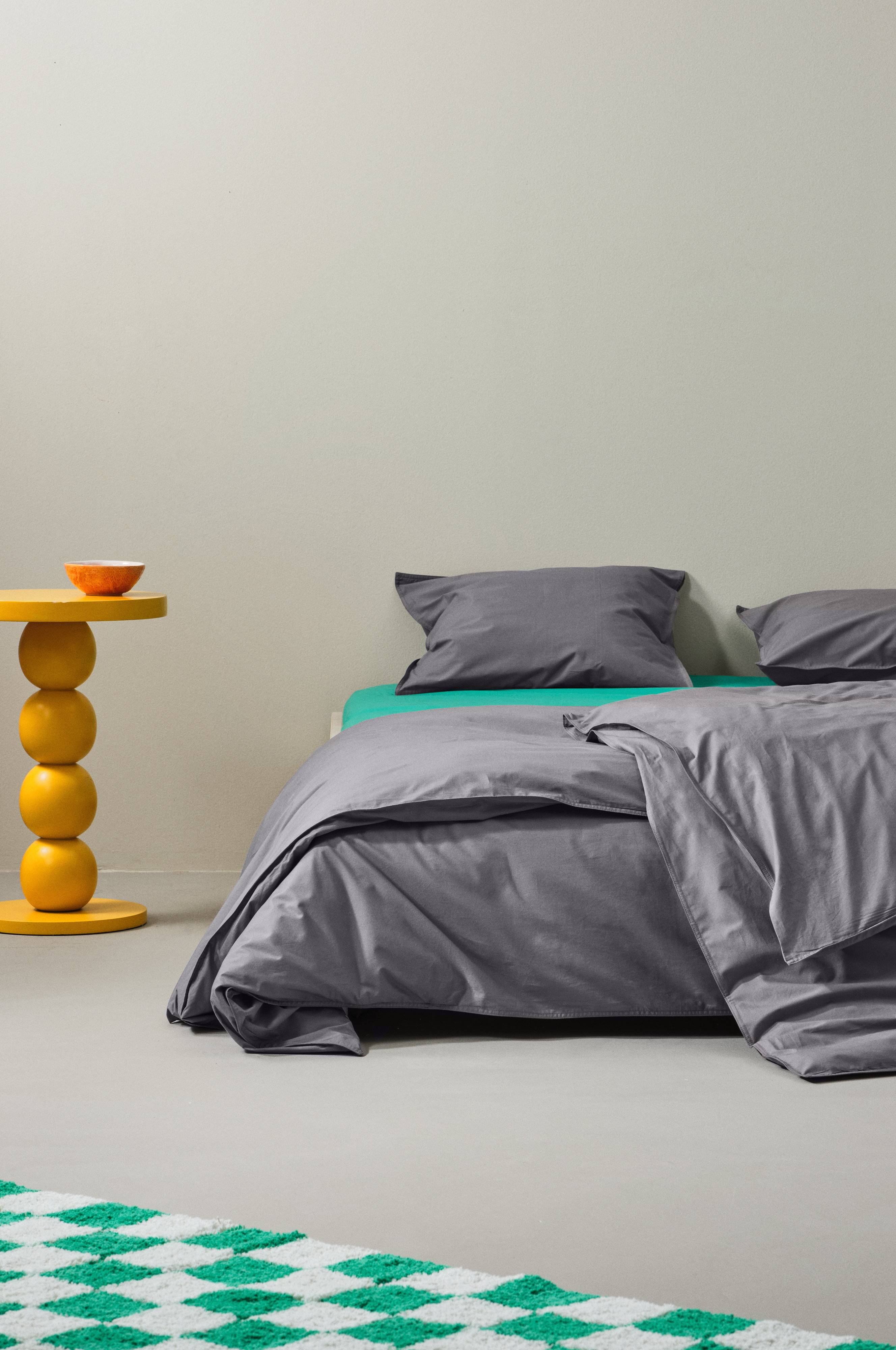 Ensfarget dynetrekk av myk, økologisk bomullspercale. Percale er et ekstra mykt og deilig stoff som veves med tynne, fine bomullstråder. Sengetøyet i serien REMY har dobbeltsøm rundt. Dynetrekket lukkes med små trykknapper. Trådtetthet på 200 tc. (Trådtettheten forteller om antallet tråder, thread counts, pr. kvadrattomme i et stoff. Jo høyere trådtetthet, desto høyere kvalitet.)