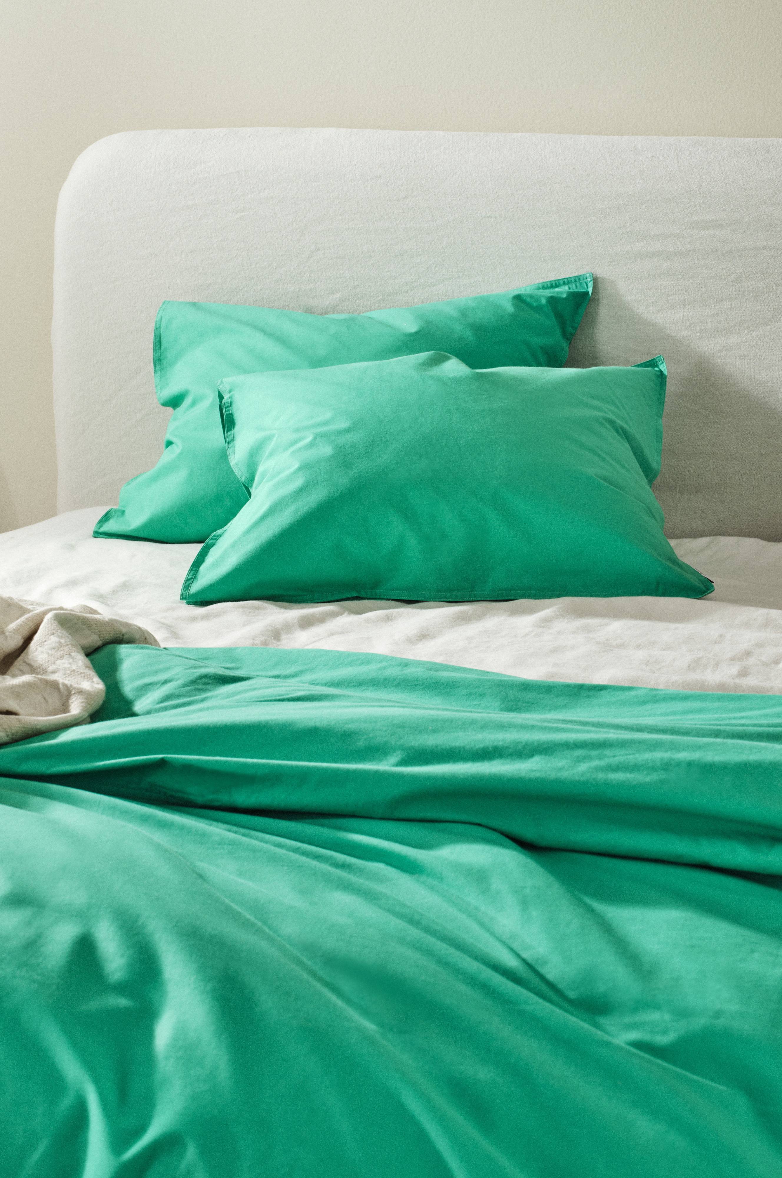 2-pk ensfarget putevar av myk, økologisk bomullspercale. Percale er et ekstra mykt og deilig stoff som veves med tynne, fine bomullstråder. Sengetøyet i serien REMY har dobbeltsøm rundt. Trådtetthet på 200 tc. (Trådtettheten forteller om antallet tråder, thread counts, pr. kvadrattomme i et stoff. Jo høyere trådtetthet, desto høyere kvalitet.)