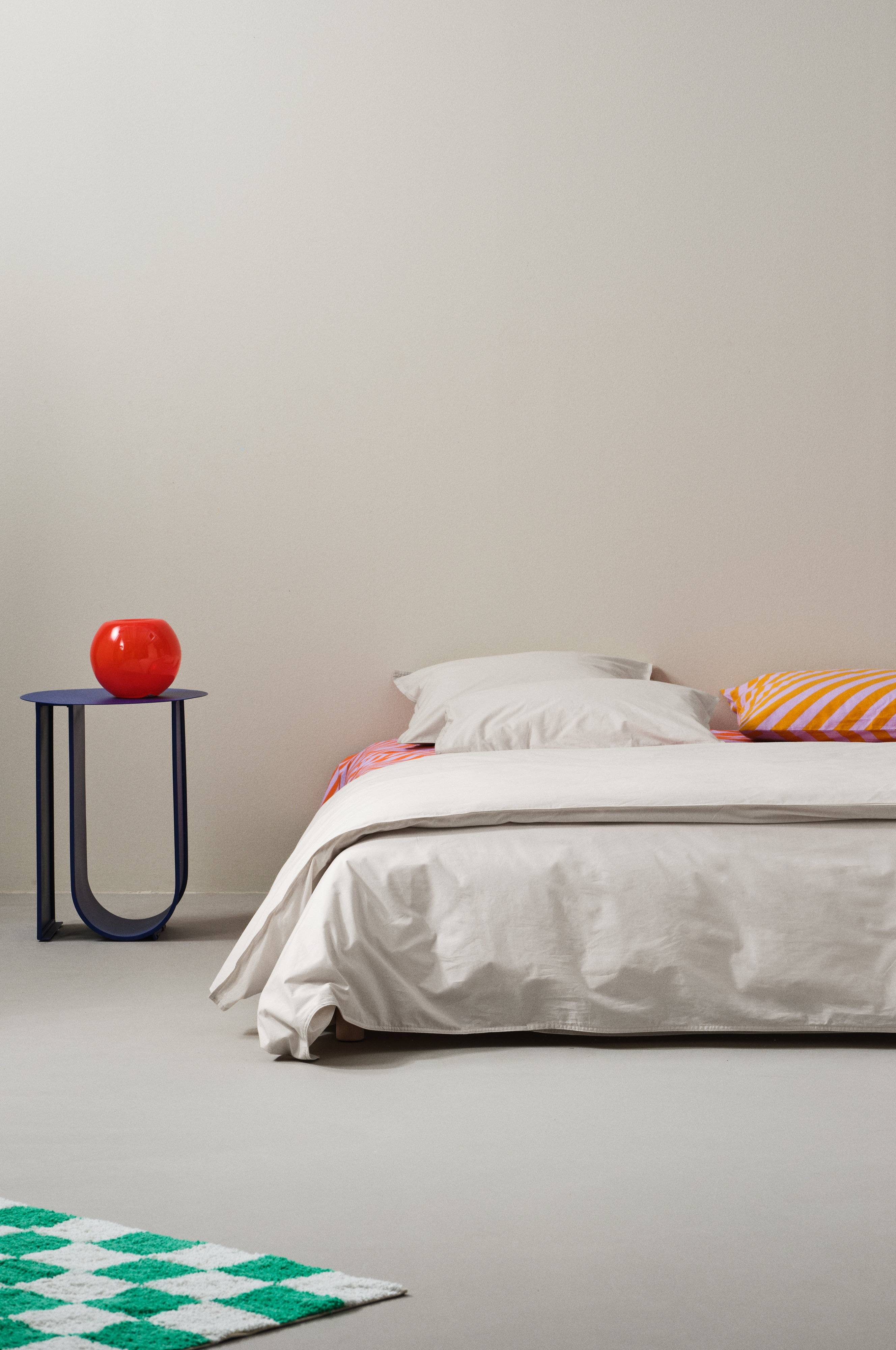 Ensfarget sengesett i tre deler, et ekstra bredt dynetrekk og to putevar av myk, økologisk bomullspercale. Percale er et ekstra mykt og deilig stoff som veves med tynne, fine bomullstråder. Sengetøyet i serien REMY har dobbeltsøm rundt. Dynetrekket lukkes med små trykknapper. Åpning øverst i hjørnene på dynetrekket. Det gjør det lettere å tre dynetrekket over dynen. Trådtetthet på 200 tc. (Trådtettheten forteller om antallet tråder, thread counts, pr. kvadrattomme i et stoff. Jo høyere trådtetthet, desto høyere kvalitet.)