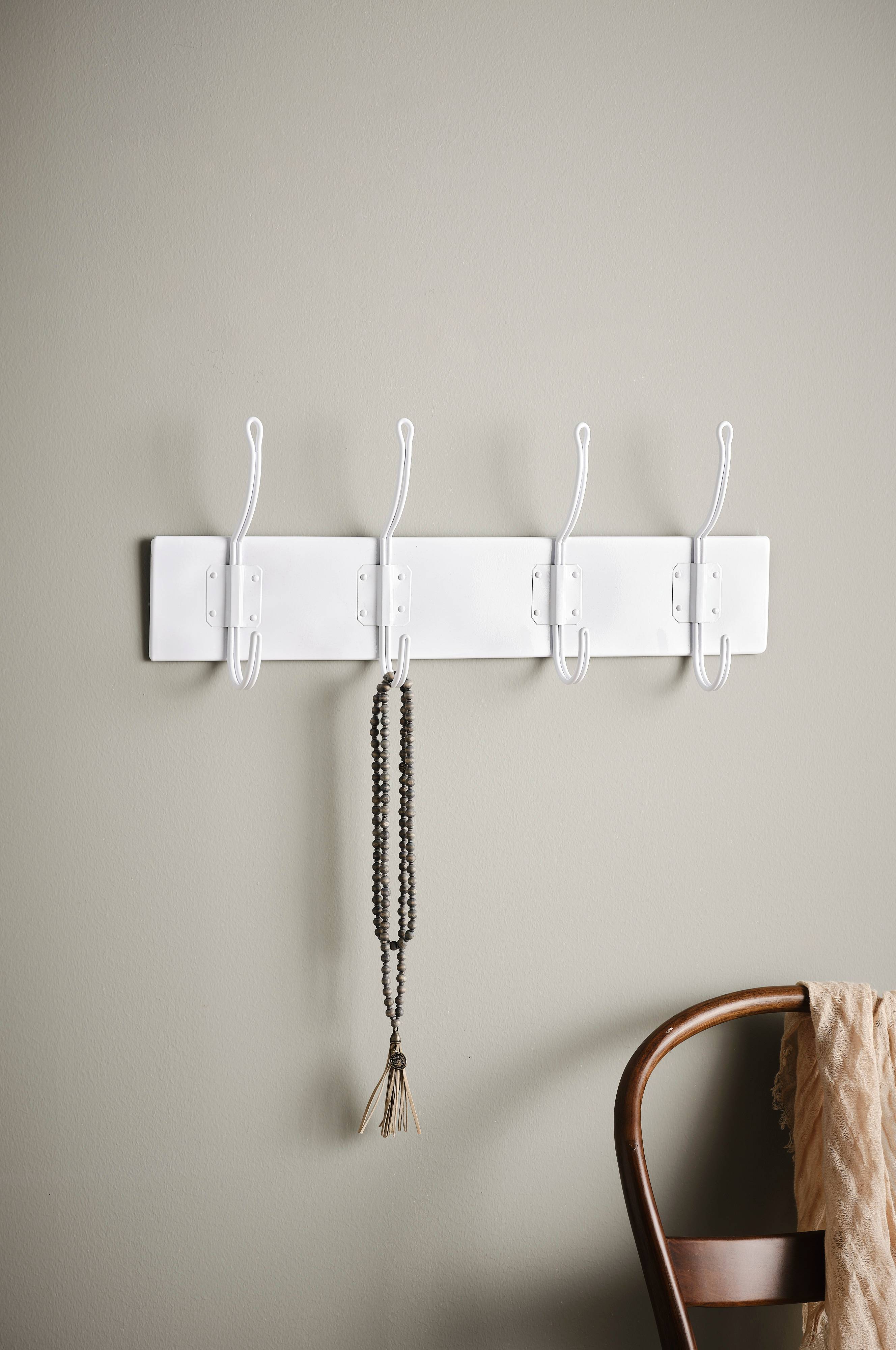 Knaggrekke i pulverlakkert metall med fire kroker (to hengemuligheter på hver). En praktisk og dekorativ knaggrekke som kanskje gir litt nostalgiske følelser.