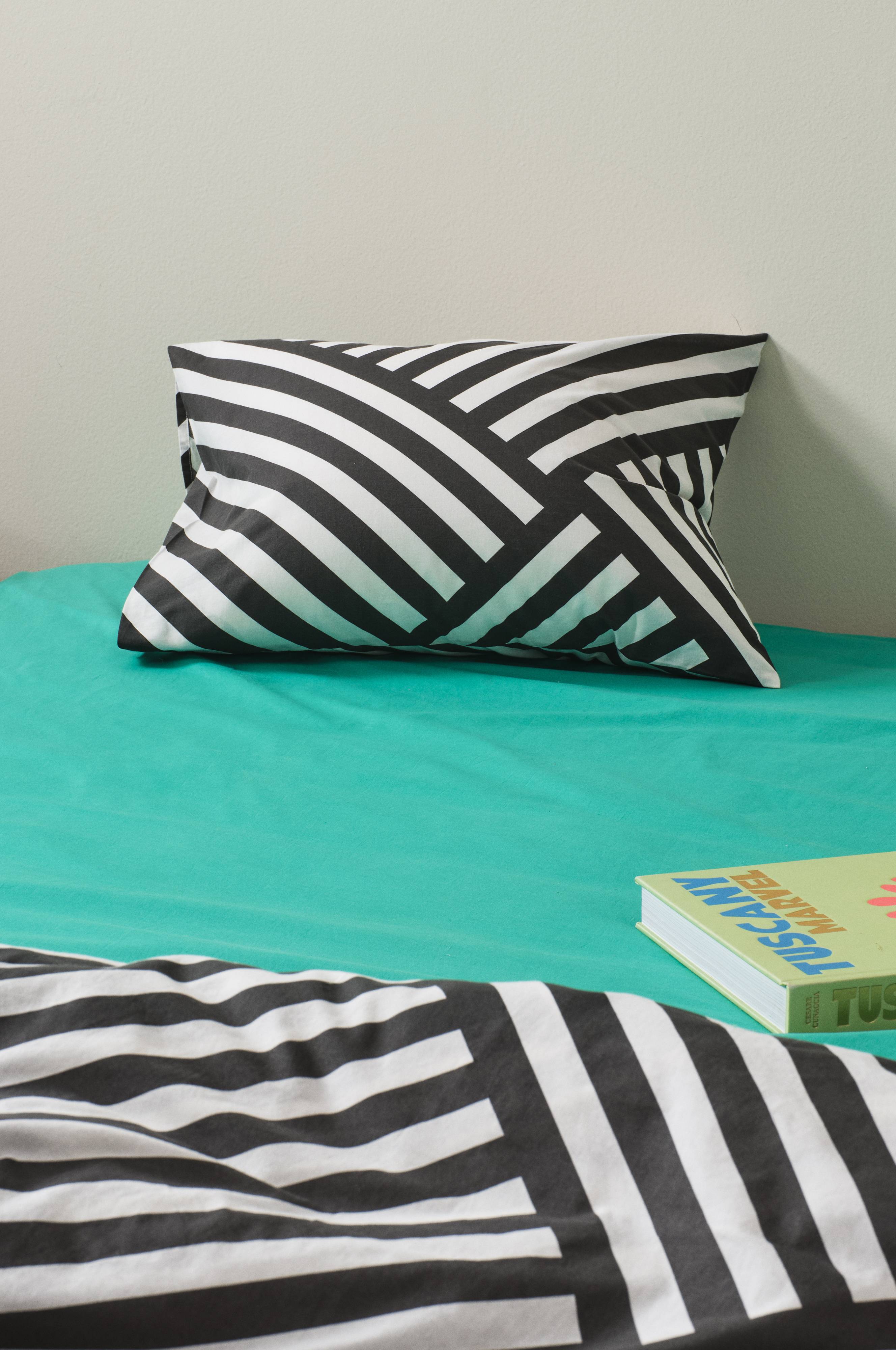1-pk putevar av bomull med trykt, geometrisk stripemønster. Sengetøyprogrammet RIMA er plaggvasket for å bli ekstra mykt og deilig. Trådtetthet på 144 tc. (Trådtettheten forteller om antallet tråder, thread counts, pr. kvadrattomme i et stoff. Jo høyere trådtetthet, desto høyere kvalitet.)