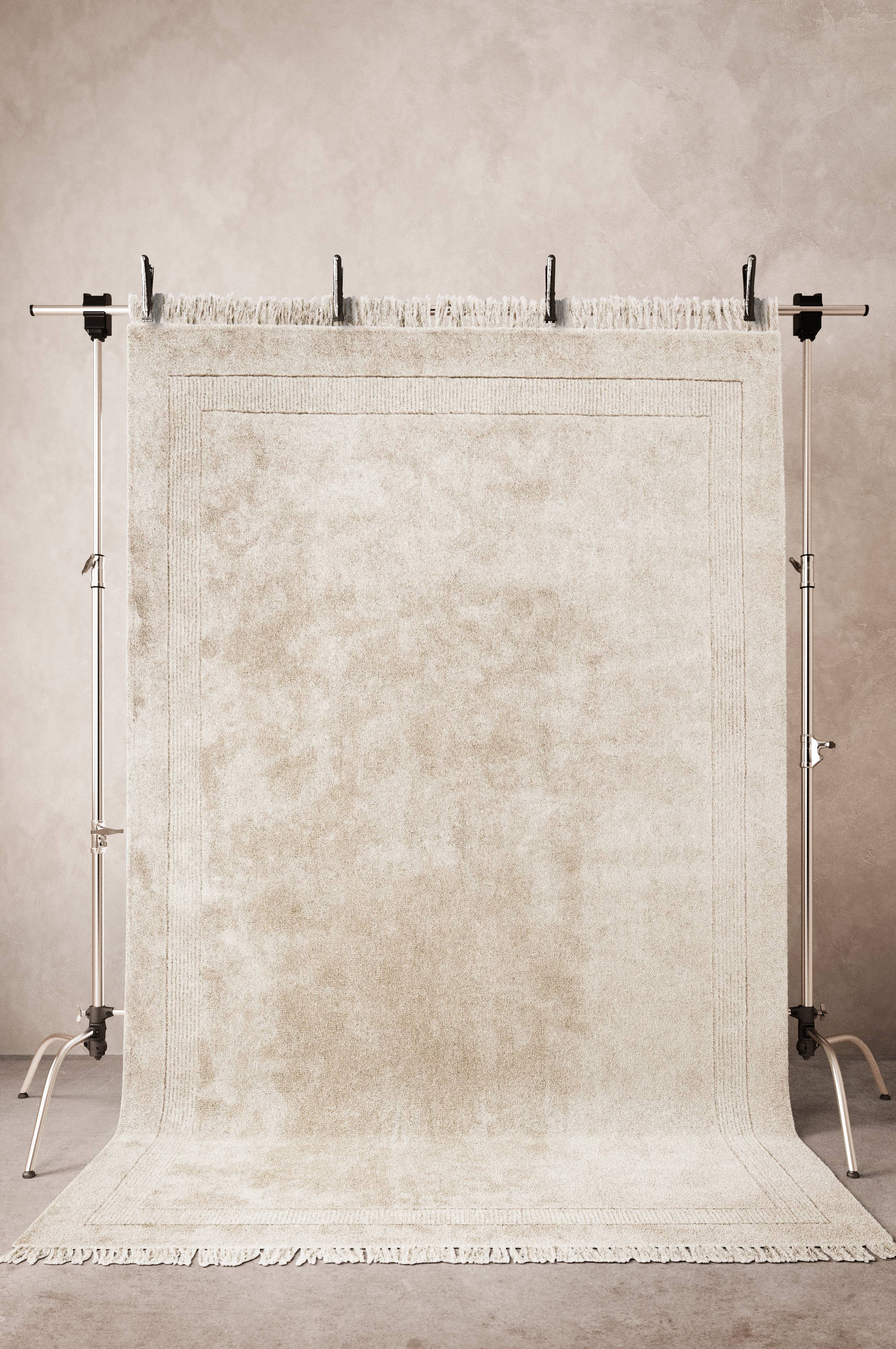 ROME er et ensfarget, håndtuftet teppe i viskose. Glansfull og silkelignende med en dekorativ bord som rammer inn. ROME har en fantastisk kvalitet, og ligger perfekt mot gulvet. Frynselengde 12-14 cm. Lugghøyde 0,7-0,9 cm. 4800 g/m².