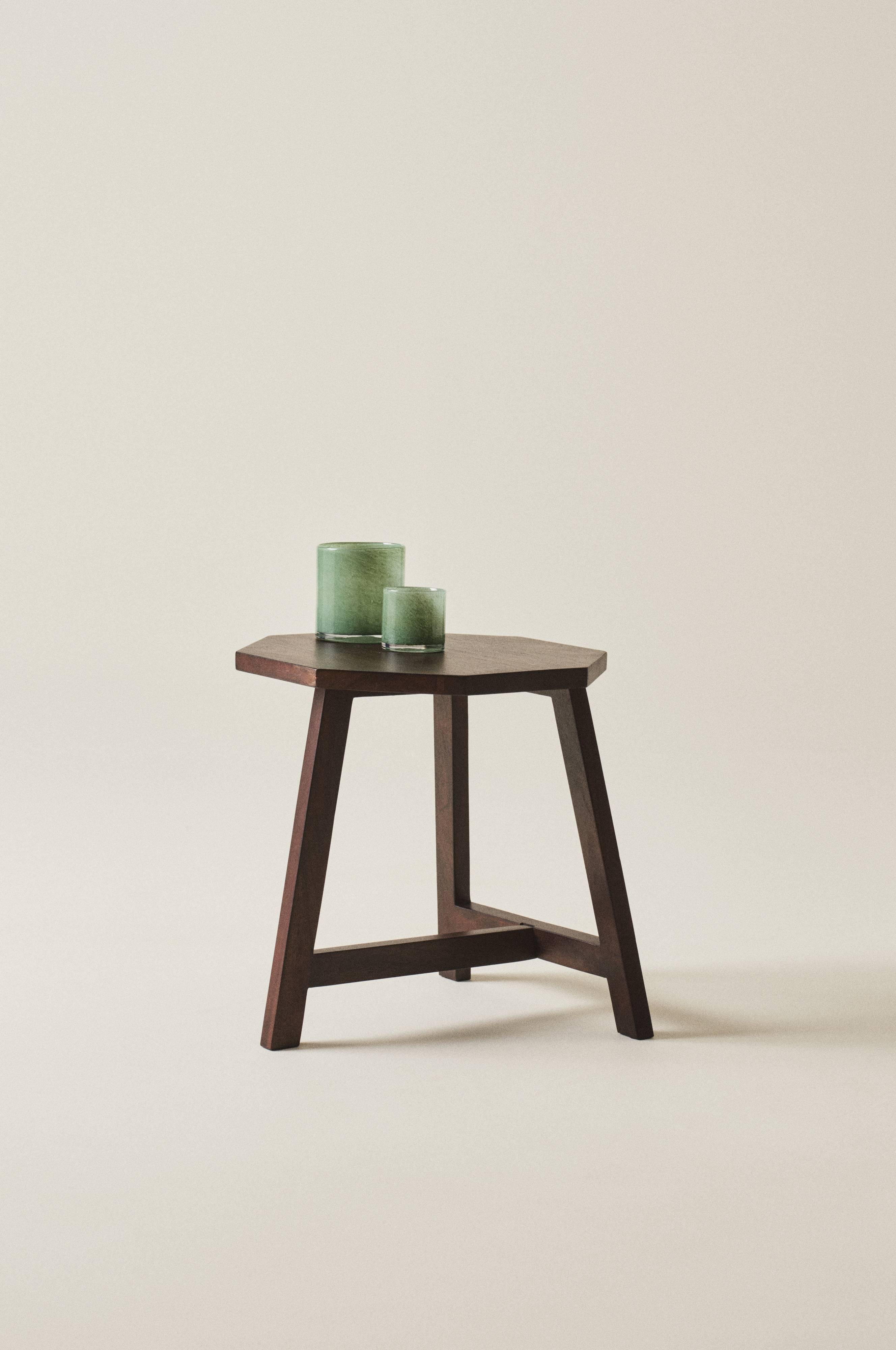 SALI er et sidebord av massivt mangotre med mørk overflatebehandling som gir treet en brent følelse samtidig som tremønsteret beholdes. Det lille bordet har åttekantet bordplate og tre ben i spennende konstruksjon som gjør bordet spesielt. Noe montering kreves. Monteringsanvisning medfølger.