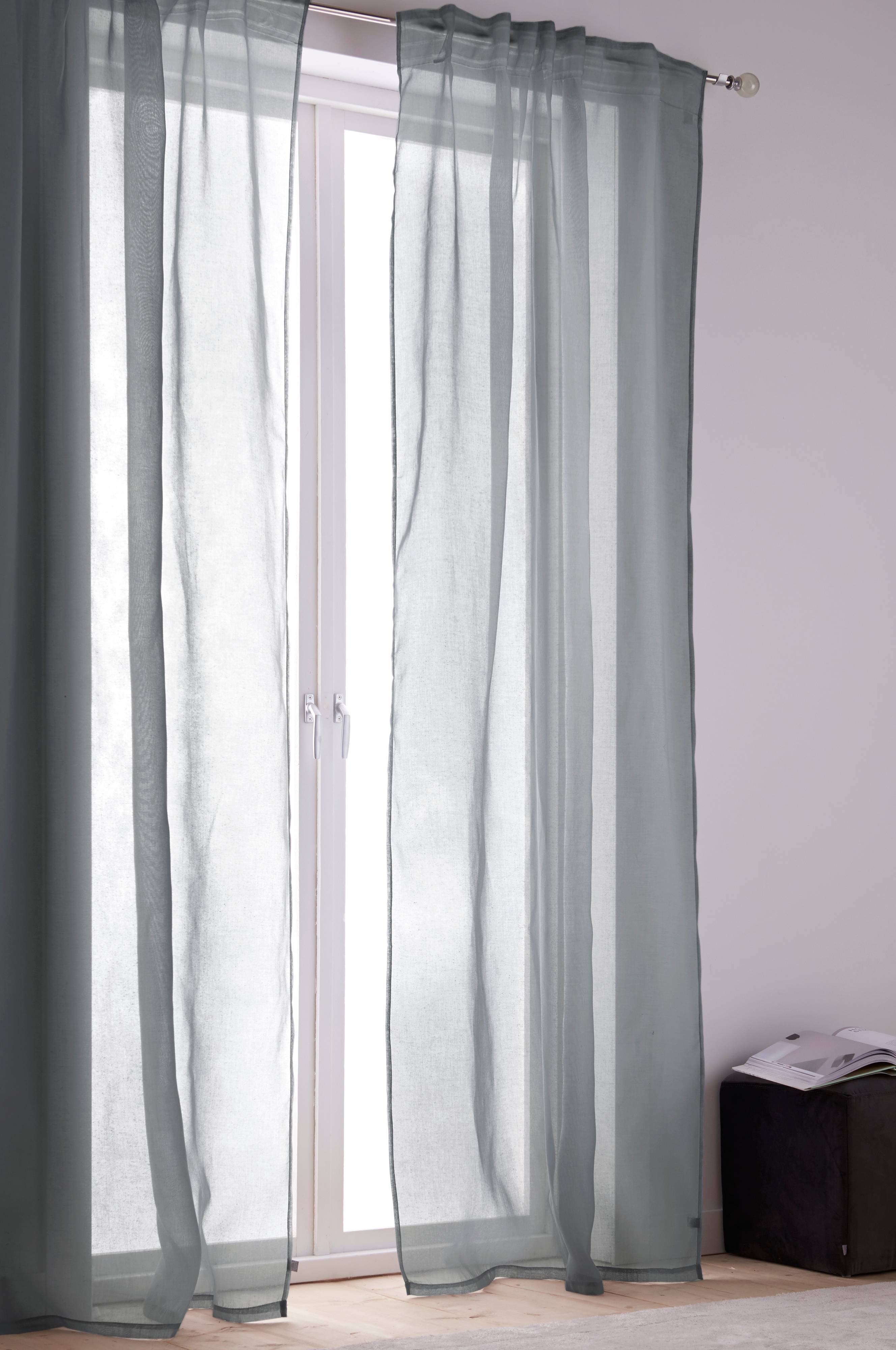 Tynne lengder i luftig voile som slipper lyset inn gjennom vinduet ditt. Lengdene har et påsydd multifunksjonsbånd for ulike opphengsmuligheter.
