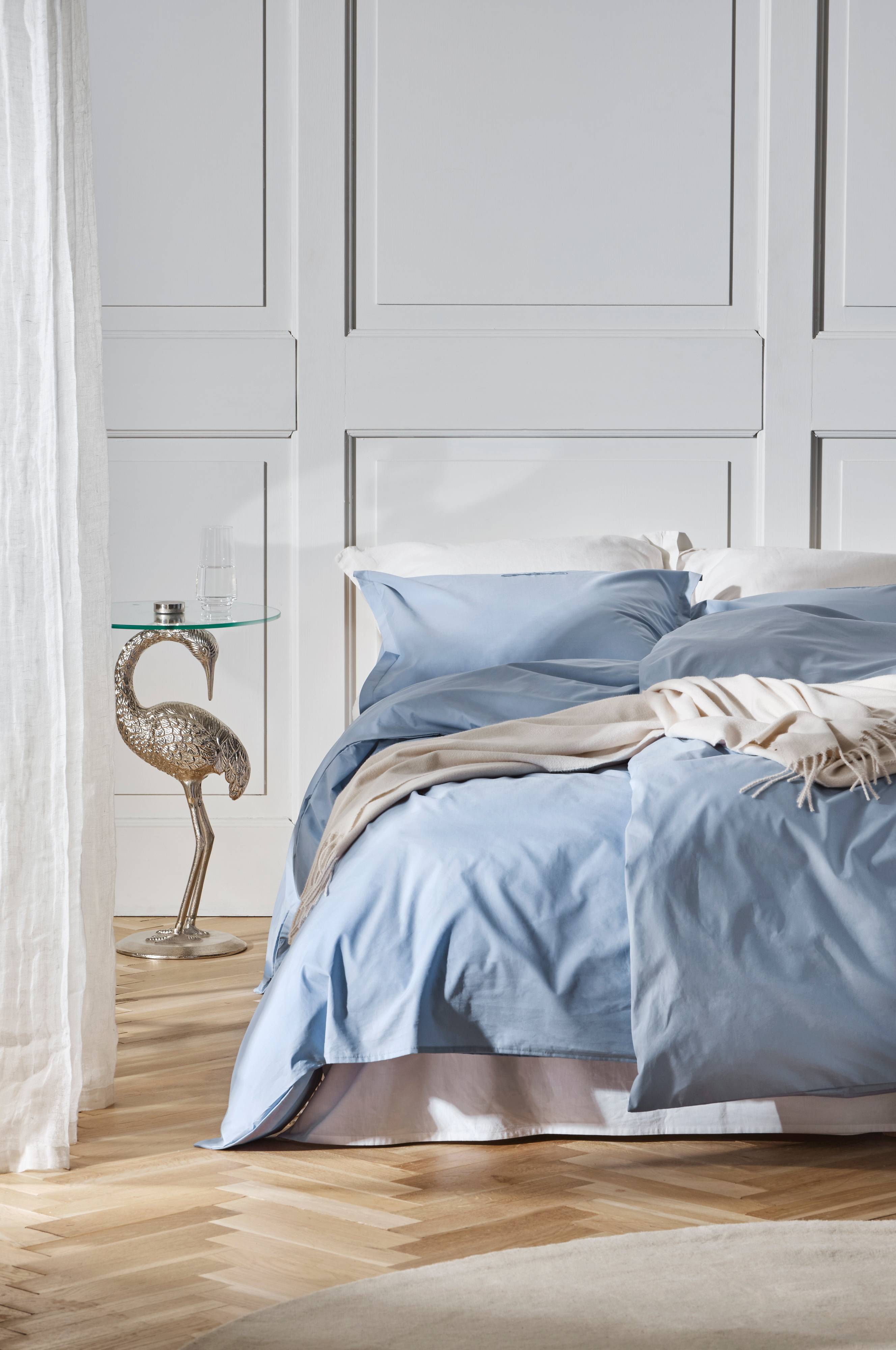 Dynetrekk i ensfarget bomullspercale. Trådtetthet på 200 tc. (Trådtettheten forteller om antallet tråder, thread counts, pr. kvadrattomme i et stoff. Jo høyere trådtetthet, desto høyere kvalitet).