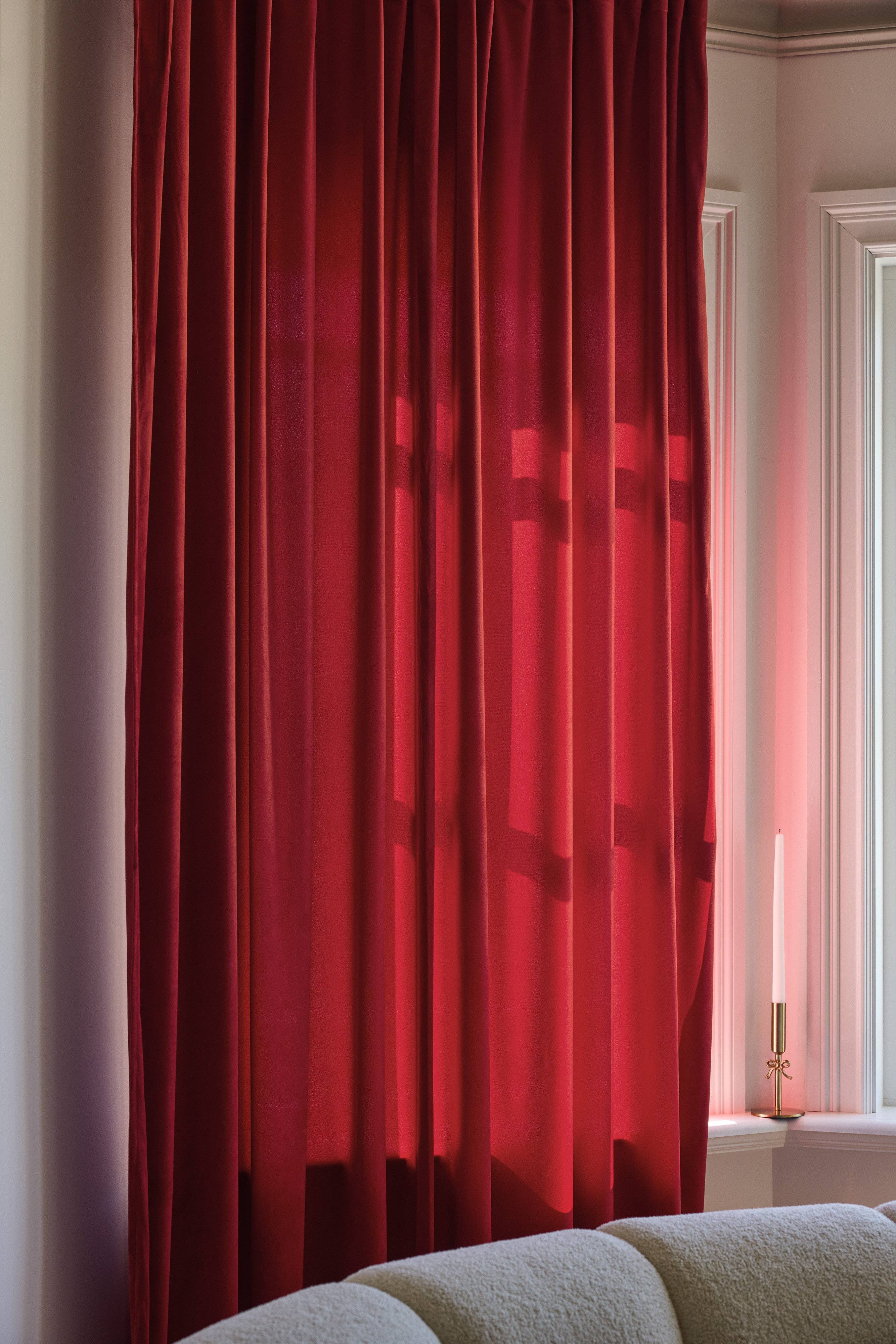 Fin farge og glans på stoffet og fint fall kjøpte rød blir så fint i soverommet mitt til jul fornøyd med kjøpet mitt