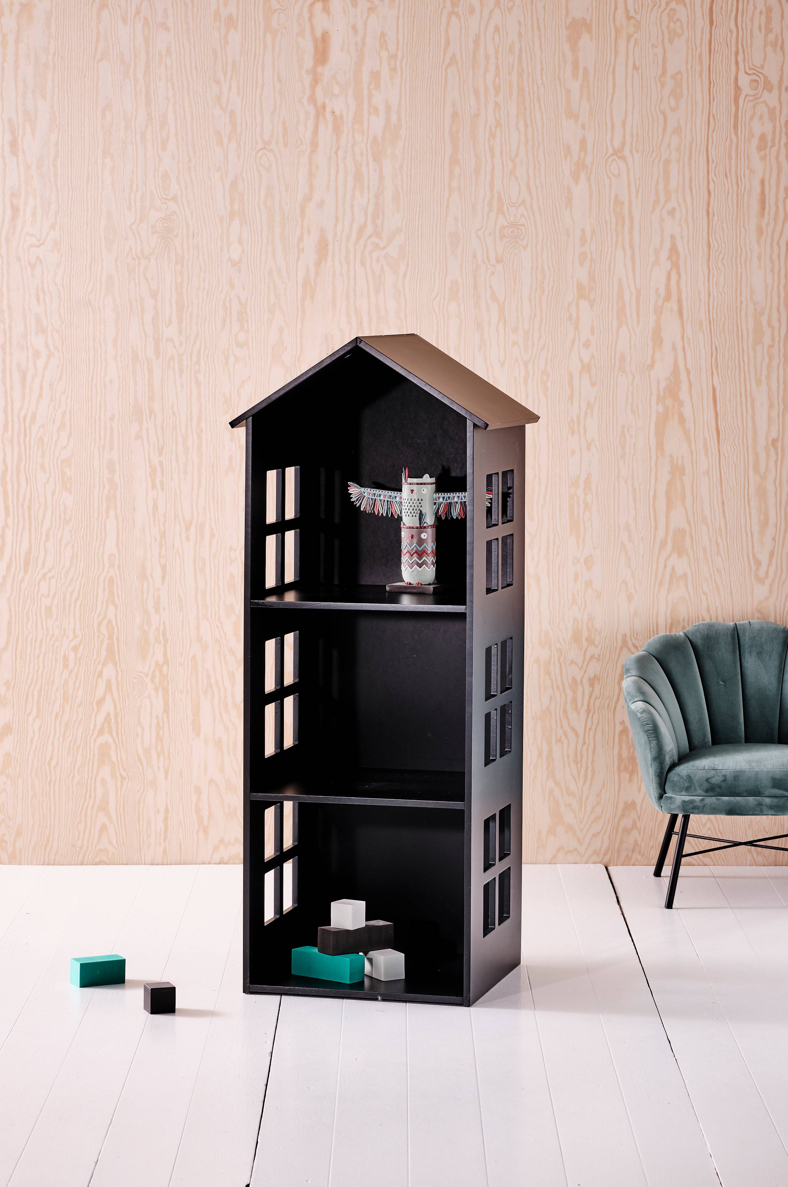 Hylle i malt MDF. SEVILLA er formet som et hus med vindu på sidene. Hyllen er fin å oppbevare favorittbøker, hobbyting eller leker i. Leveres umontert. Monteringsanvisning medfølger.