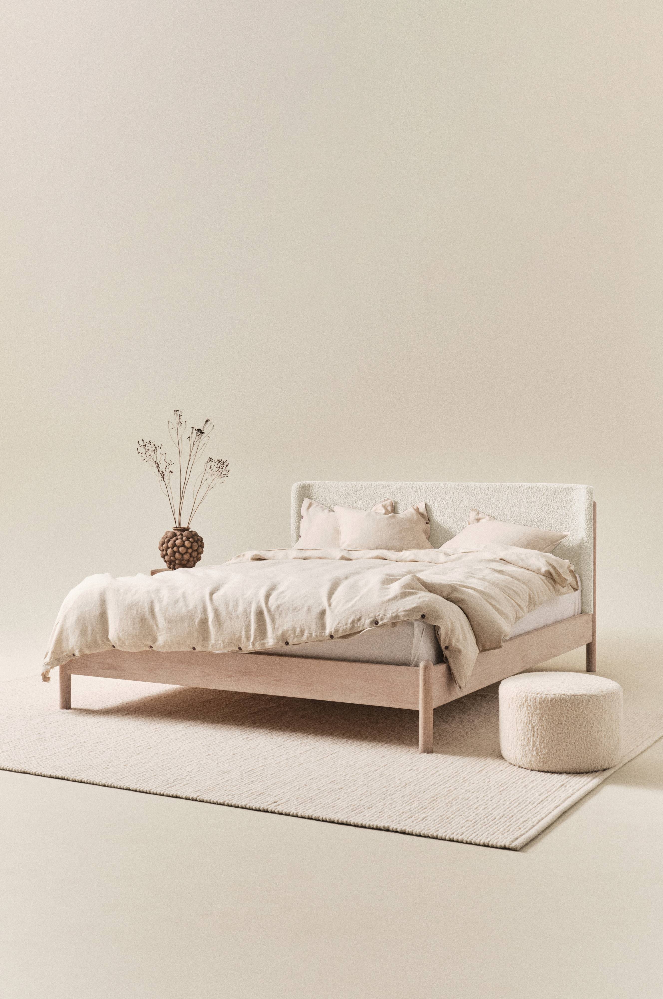SHEPA er en innbydende og herlig sengeramme av FSC-merket bjørk som er hvitsåpet for å få en lys, fresh fremtoning. Den lett buede sengegavlen er kledd med teddystoff. Det robuste teddystoffet har slitestyrke på 100 000 Martindale. Møbelet har herlig nordisk design med myke former, og bjørk er et treslag som forbindes med vår skandinaviske stil. At bjørken har en bærekraftig profil gir merverdi. Sengerammen har ribbebunn av kryssfiner. Ribbebunnen gir god luftgjennomstrømning og et godt klima i sengen. Madrass er ikke inkludert. Noe montering kreves. Monteringsanvisning medfølger.