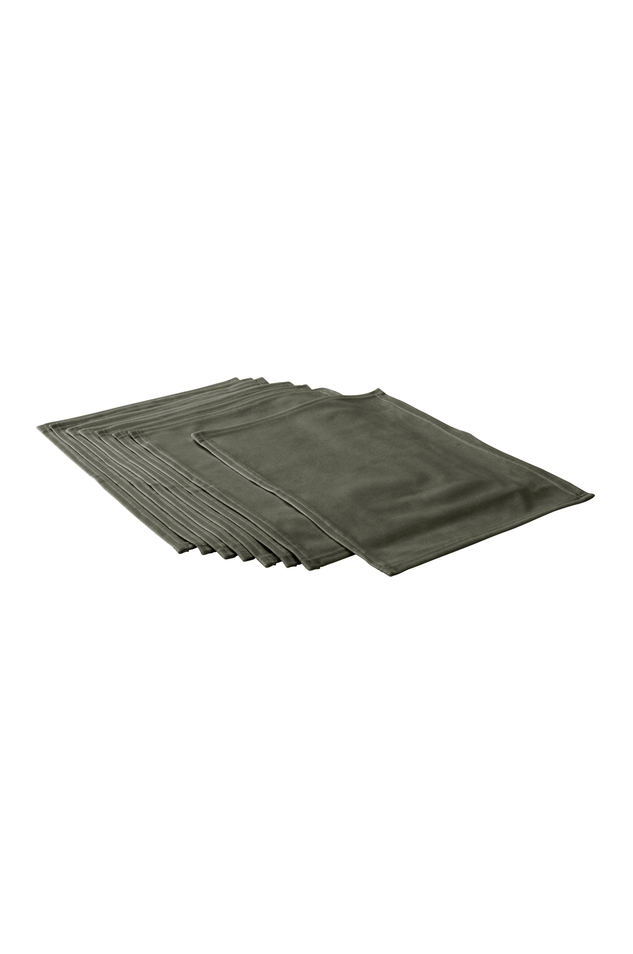 8-pk bordbrikker i elegant fløyel av polyester. Fløyelen skimrer vakkert. Fargenyansen oppleves ulik avhengig av hvordan lyset faller. Brikkene har dobbelstikning rundt. Det føles både luksuriøst og fint å dekke på med fløyel.
