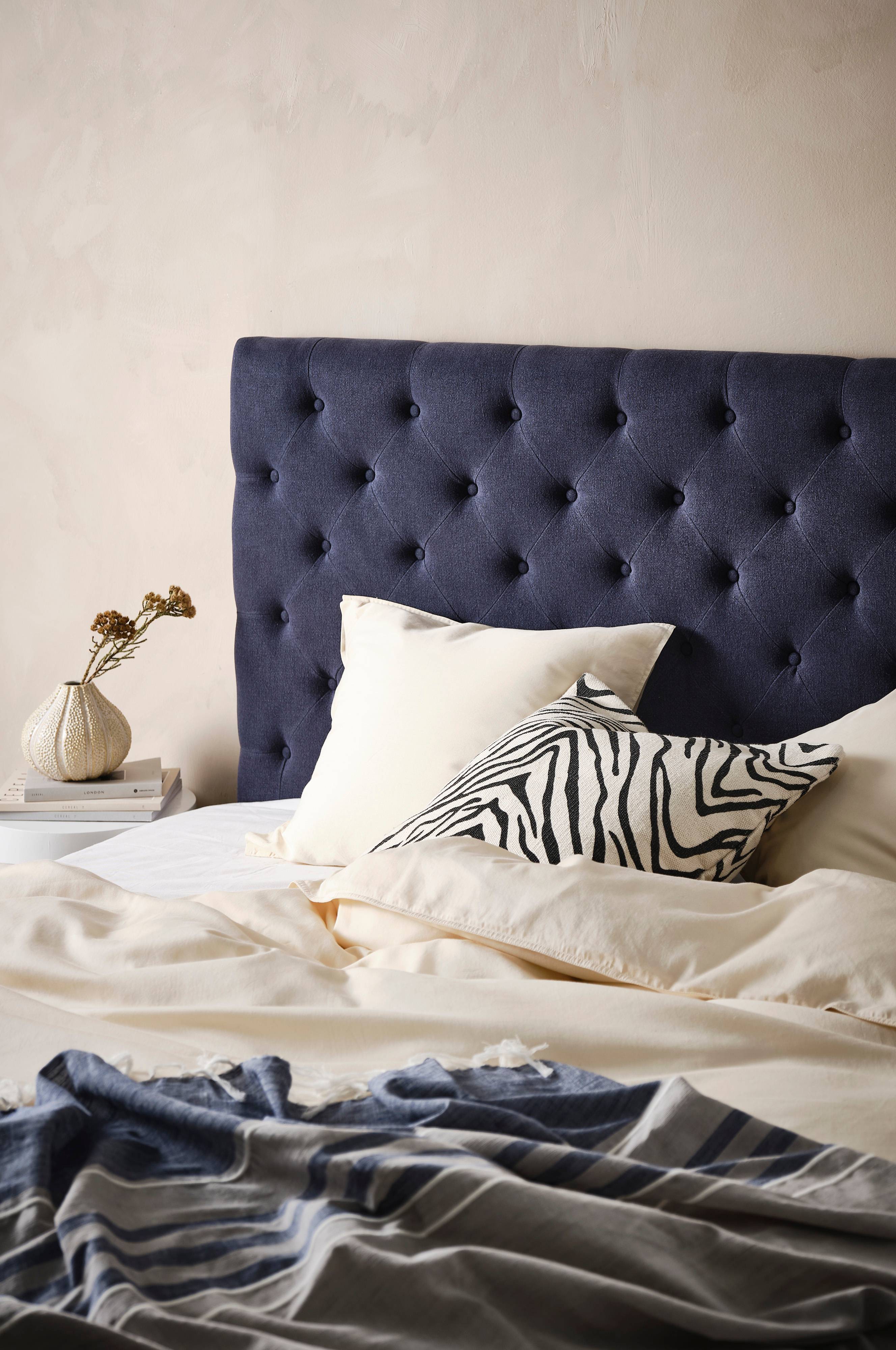 Skap hotellfølelse på soverommet med en dypt heftet sengegavl i fineste lin.