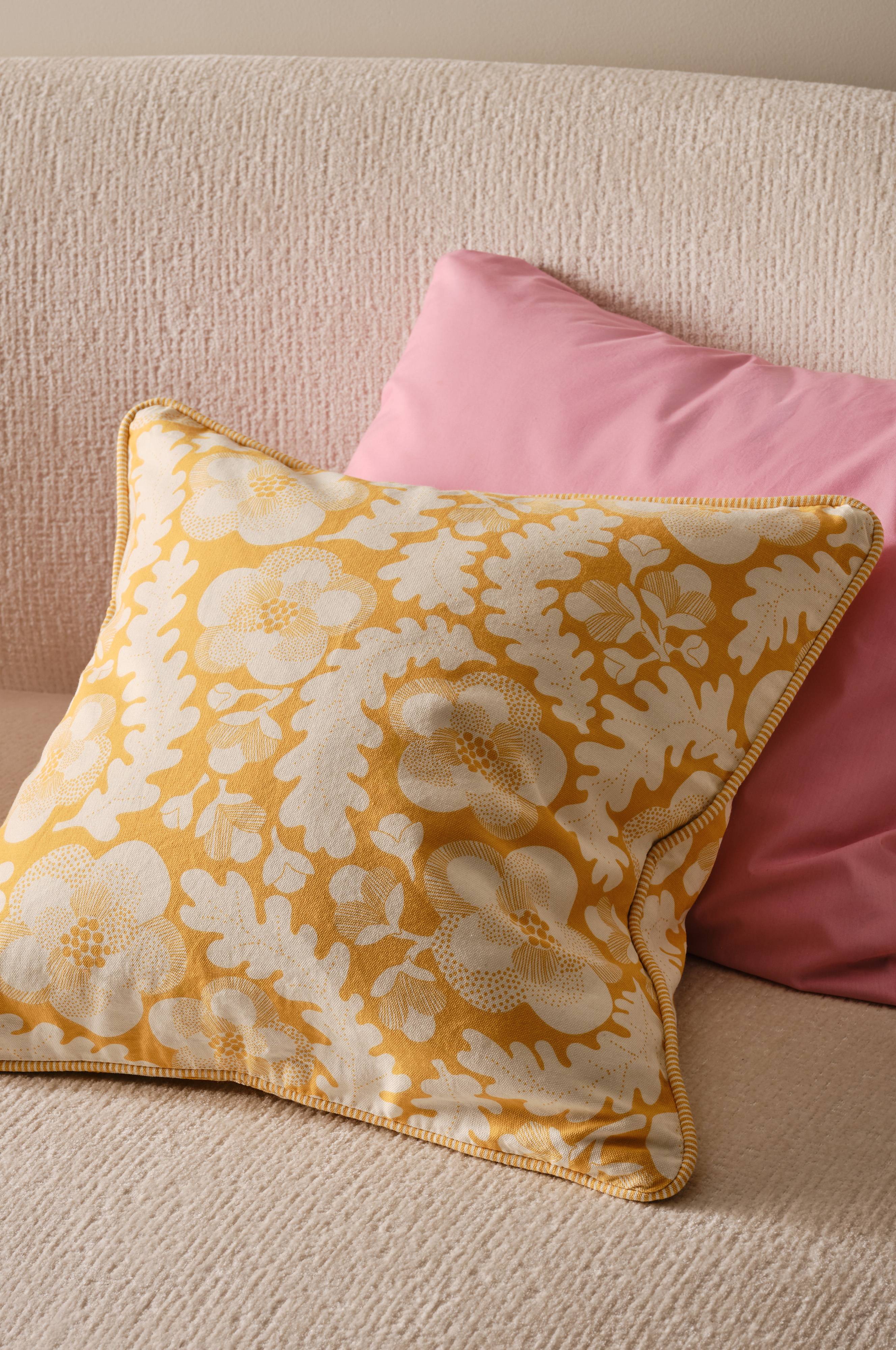 Putevaretrekket SLING har et retroinspirert design av Maria Carlberg som gir hjemmet ditt et nostalgisk preg. Putetrekket har en blomstermønstret bunn og kompletteres av en stripete pipingkant. De er en del av SLING-kolleksjonen og kan kombineres med matchende produkter for en helhetlig look. Perfekt for å tilføre sjarm til ethvert interiør.