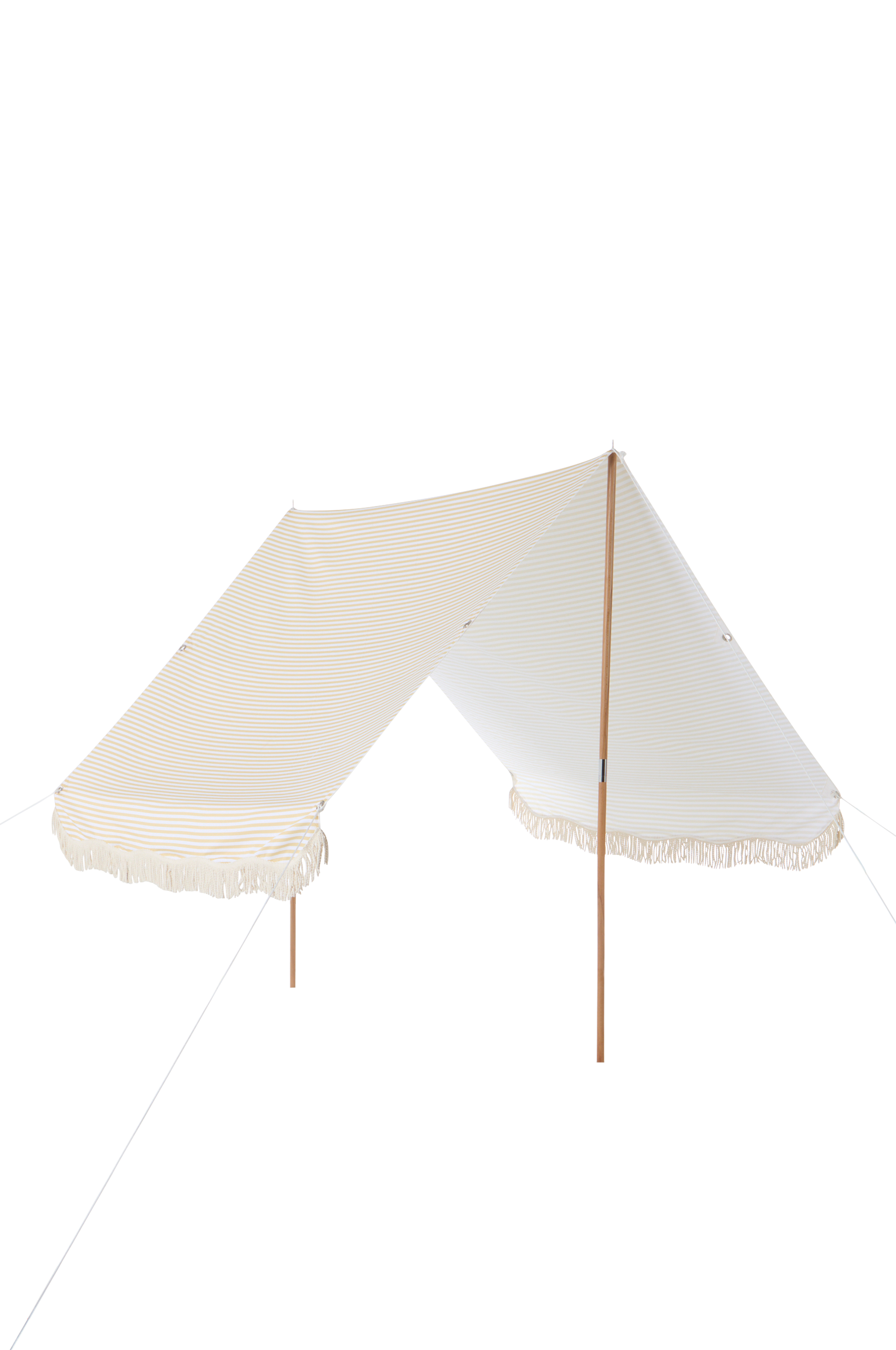 SOMORA er et stripete strandtelt med to stenger av bjørk, vannavvisende stoff av polyester og frynser av polyester. Teltet gir behagelig skygge på stranden eller i hagen. Strandteltets to stenger har spisst bakkefeste som du stikker ned i bakken. Parasollskrue til å forankre produktet i bakken/sanden følger med.