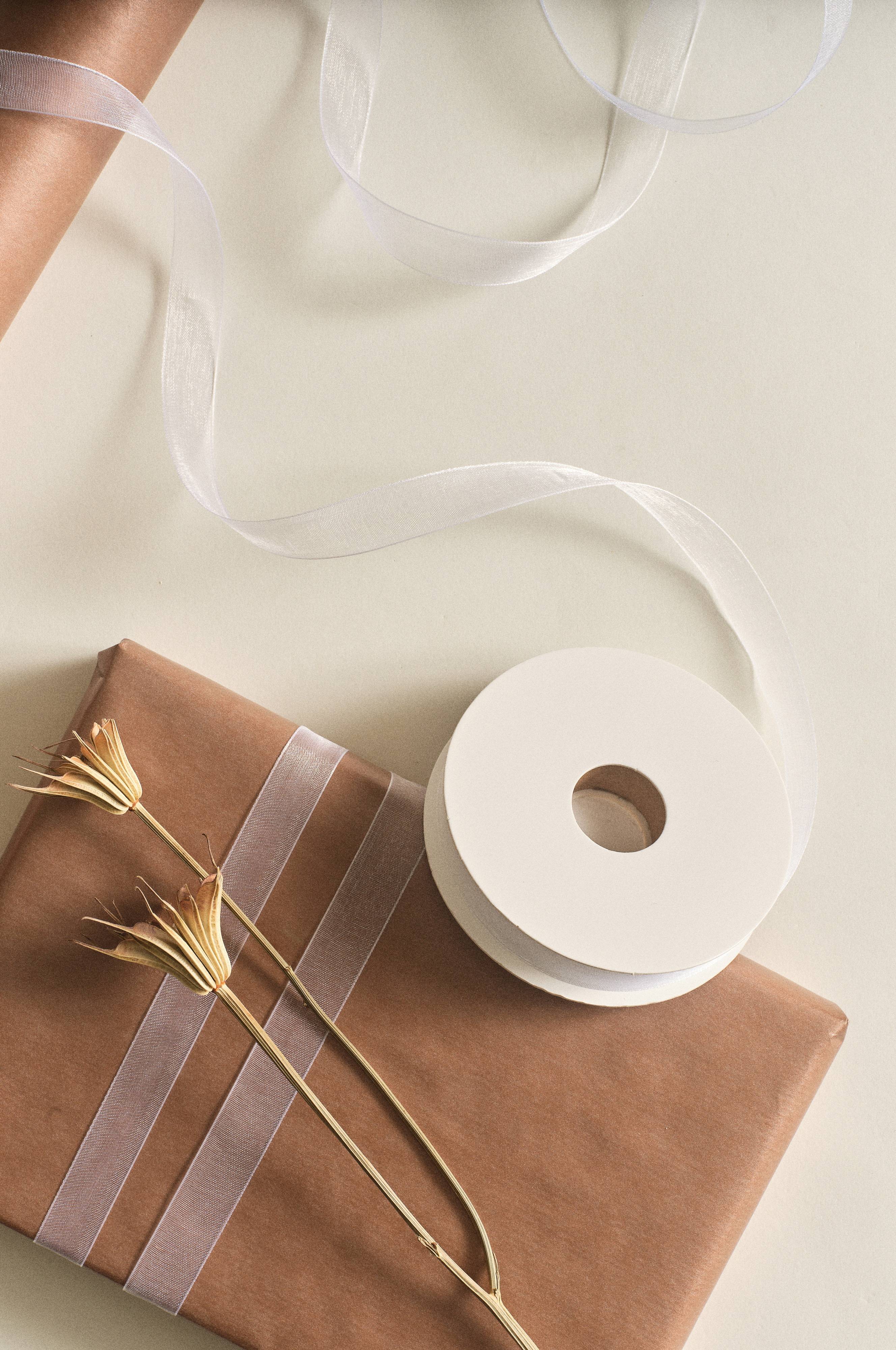 Organzabånd som gir presanger og julegaver en ekstra luksuriøs følelse. Båndet er også fint å pynte med hvis du gir bort en flaske med olivenolje, saft eller gløgg.